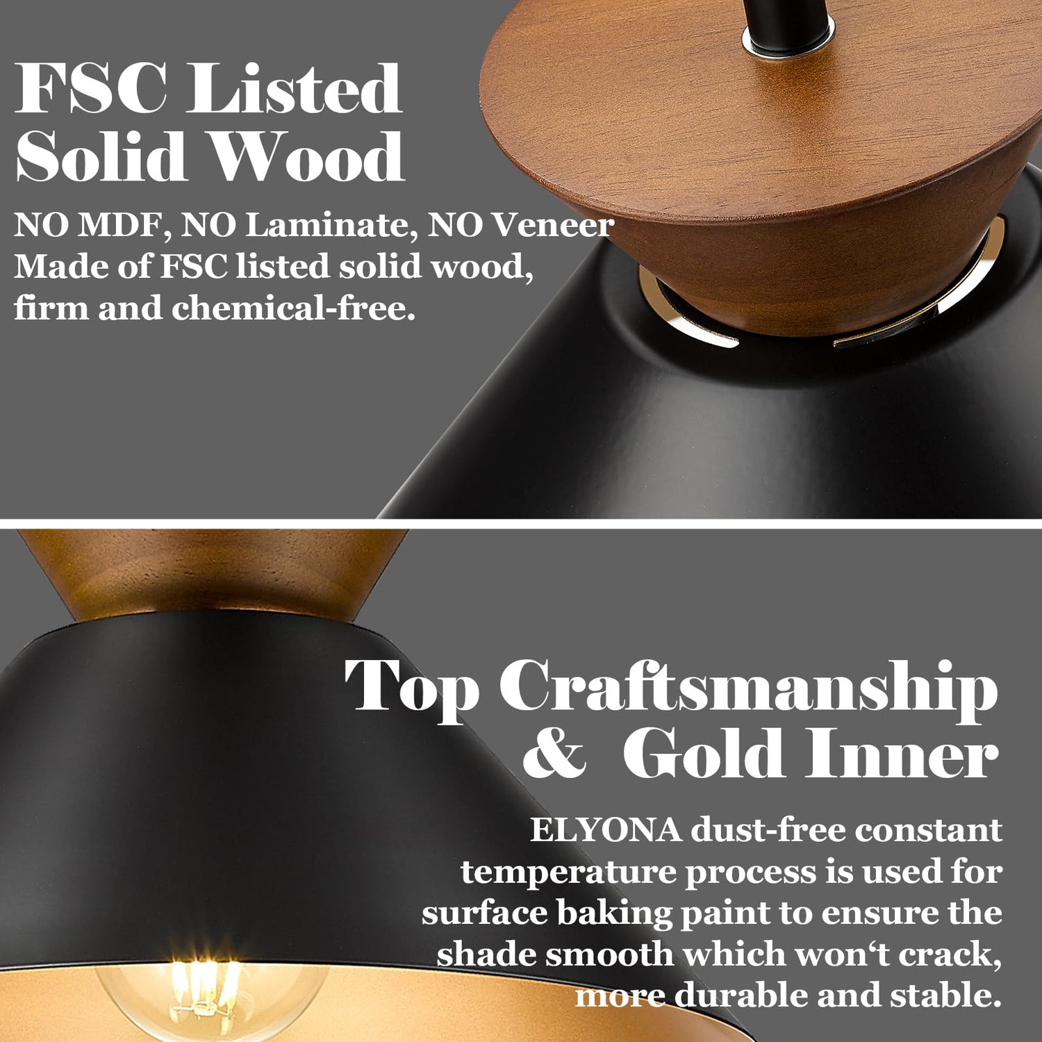 - 【Why you trust ELYONA's solid Wood?】①There is no exactly the same wood grain in the world, each lamp is a unique individual, retain the breath of nature, retain the pure natural wood grain. All our wood is sourced from internationally certified legal forests by FSC, that does not compromise ecological stability. ②Beyond showcasing the inherent beauty of solid wood light fixtures, our mission extends to the widespread promotion of Degradable, Eco-friendly Lighting.