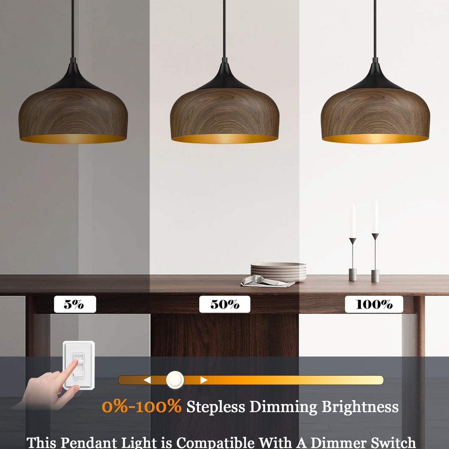 ELYONA Modern Pendant Light Walnut Wooden Pattern Dome Pendant Light Fixture Matte Black Metal Gold Inner Finish Adjustable Hanging Lighting for Kitchen Island Dining Room Office Hallway Foyer Bedroom