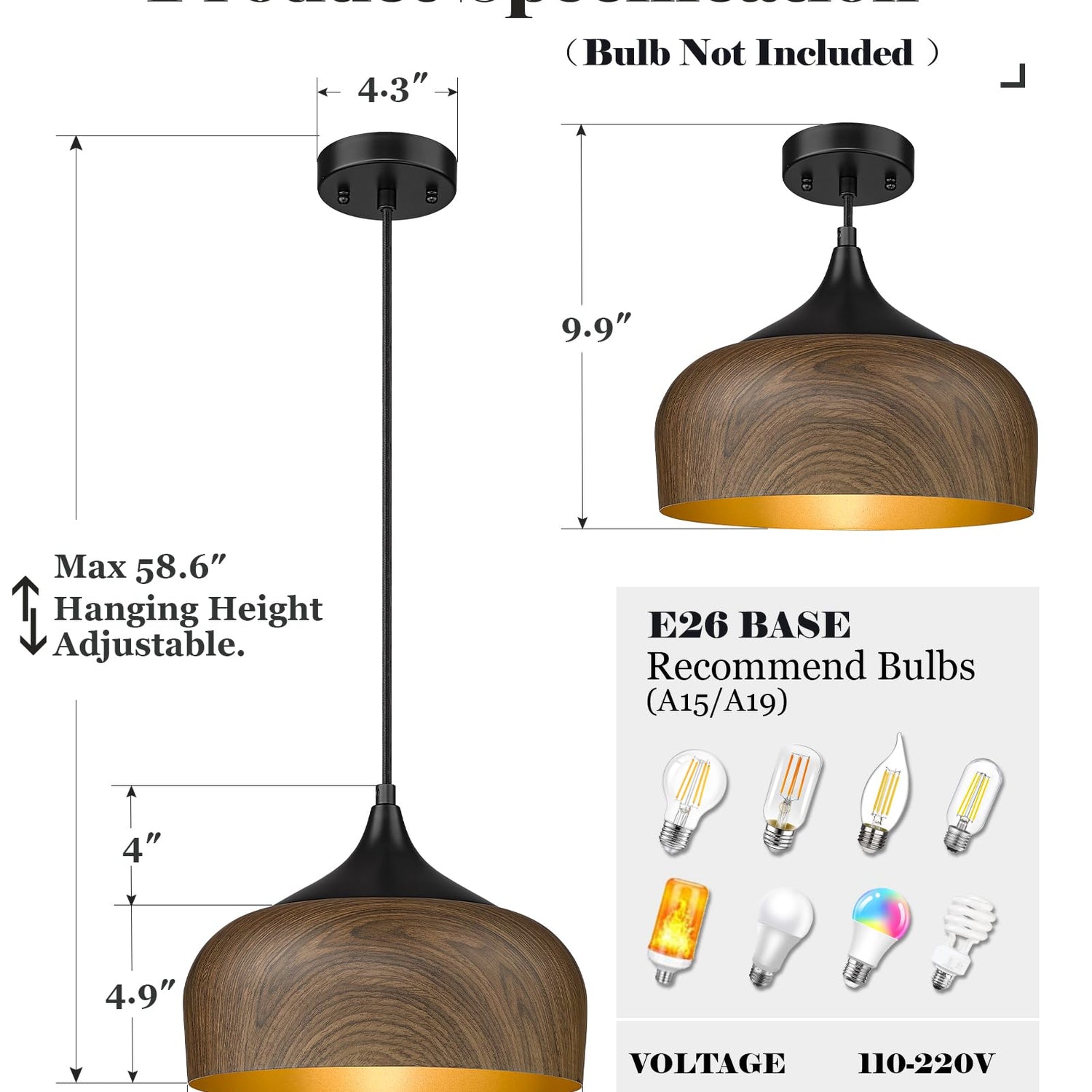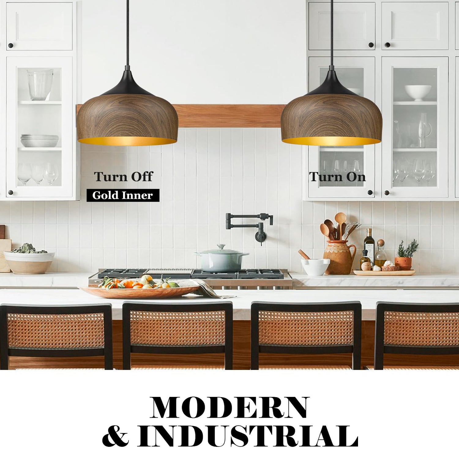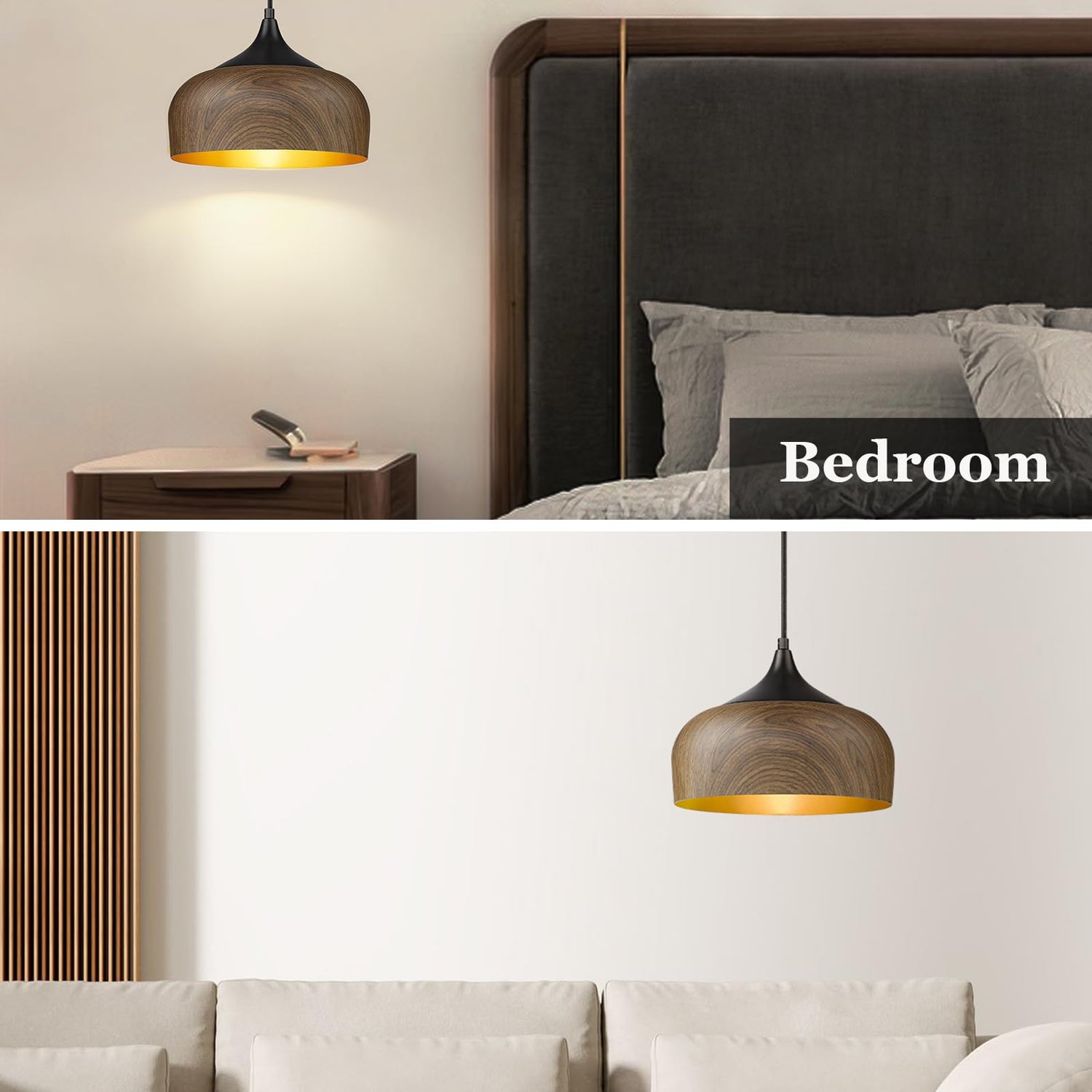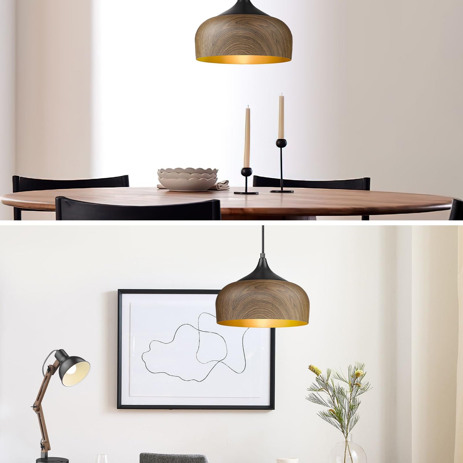 - 【 Modern & Industrial 】 ELYONA pendant light fixture a classic Scandinavian style. Classic walnut wood pattern with black metal shade, Copper tone interior for a vintage look.The retro pendant lamp adds a touch of modern and industrial feeling. Ideal for kitchen island, dining room, living room, office, coffee bar, bedroom, beside nightstand. Add this industrial looking to your home now!
