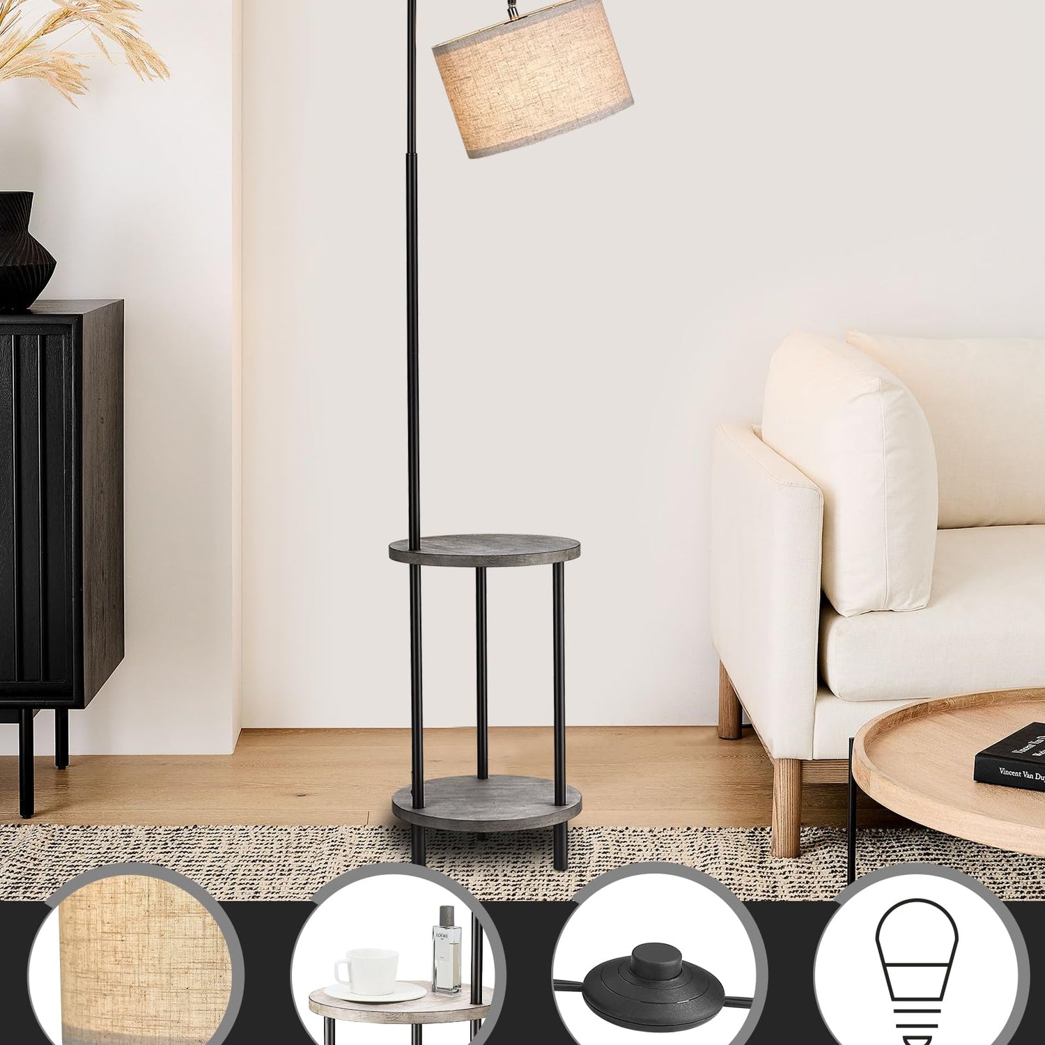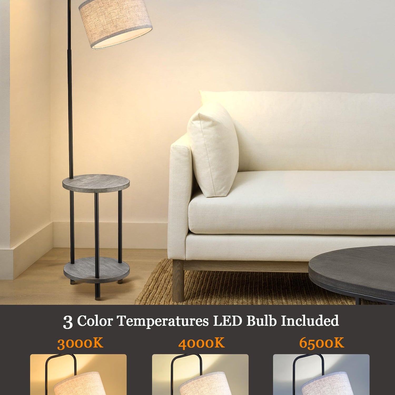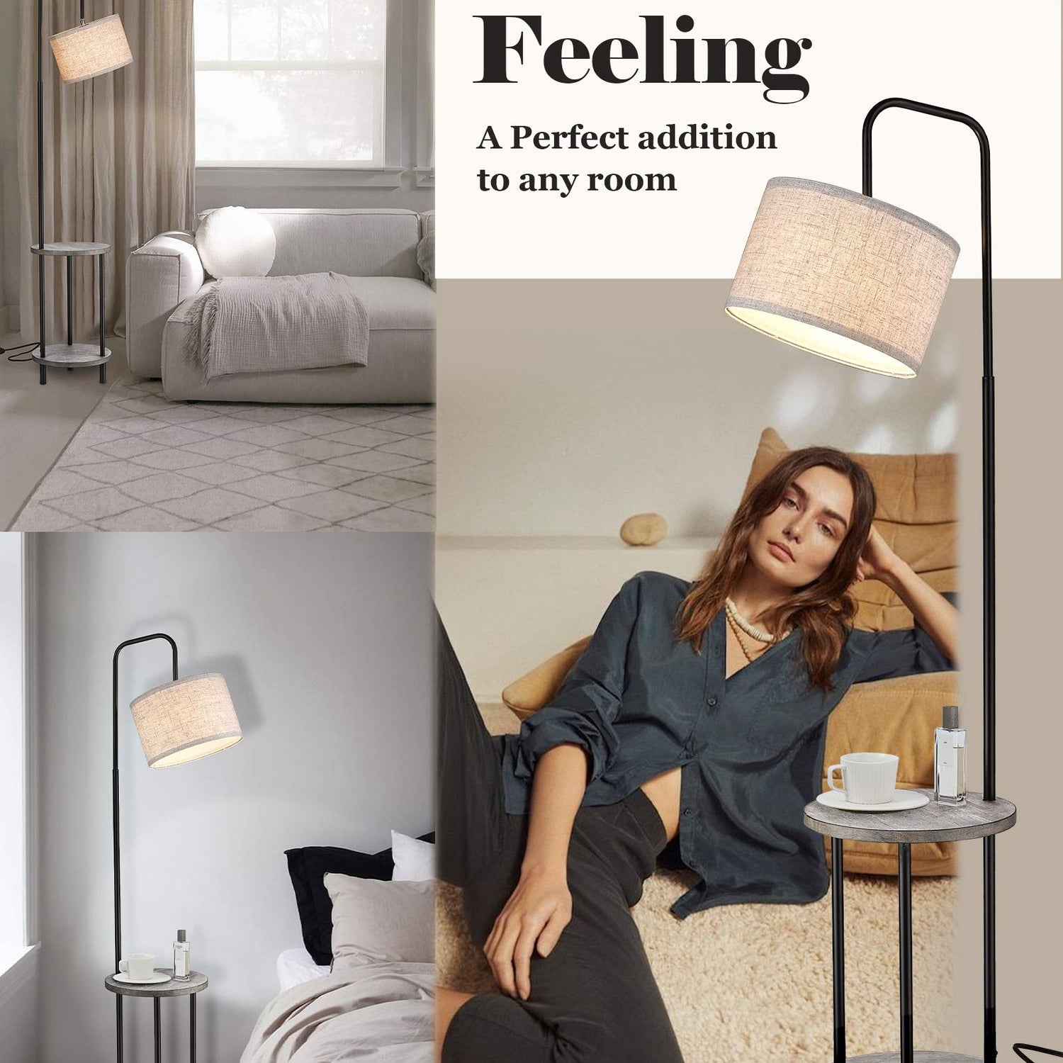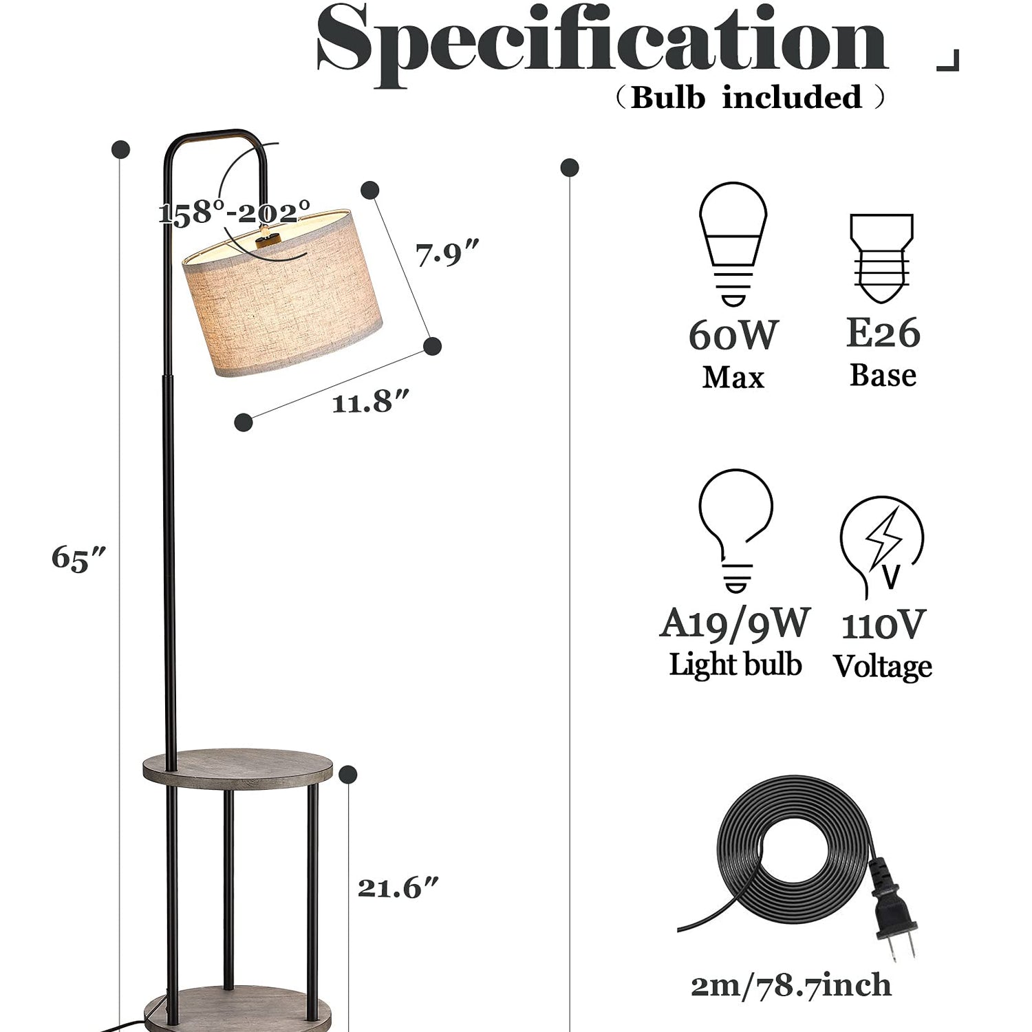- đă Space Saving Floor Lamp & ON/OFF Foot Switch ă DimensionïŒ65 in. H overall, end table is 21.6 in. H from floor and 13 in.W. The floor lamp is combined with side table to put your phone, coffee cup, ornaments, magazine, etc. Which optimizes and add more space effectively for small space.It easy to match with a range of decor styles including modern, industrial space, farmhouse, etc. Convenient footswitch allows you to easily turn the floor lamp on or off without having to bend down.