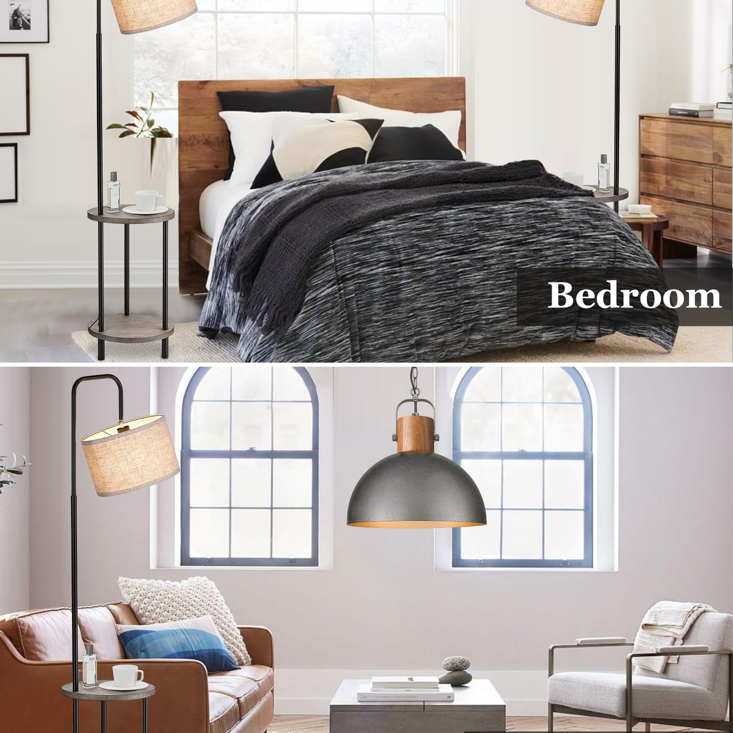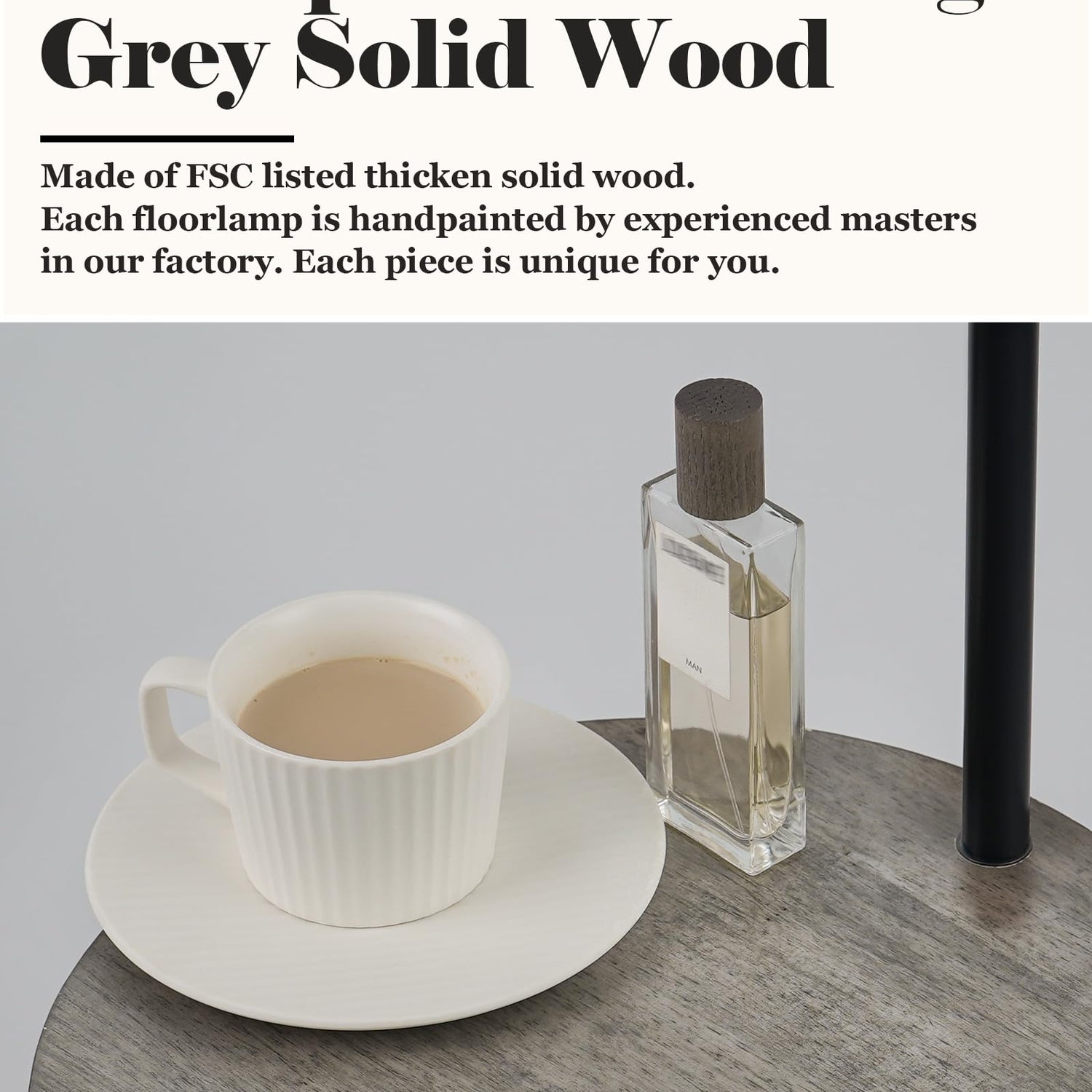 ELYONA Solid Wood Floor Lamp - Rustic Side Table Lamp for Bedroom & Living Room - Mid Century Modern Floor Lamp with 3 Color Temperatures LED Bulb - Industrial Tall Pole Reading Standing Light - Grey