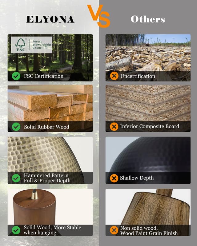 - 👍【FSC Certified Solid Wood】In an era saturated with plastic products, we choose to return to nature and embrace a sustainable lifestyle. Each lamp is a gift from nature crafted from FSC certified solid wood, ensuring that the wood comes from sustainably managed forests. This allows you to enjoy life while also contributing to the future of our planet.Unlike plastic natural solid wood offers an unique grain patterns. Each lamp is like a piece of natural art, telling you stories of life and time.