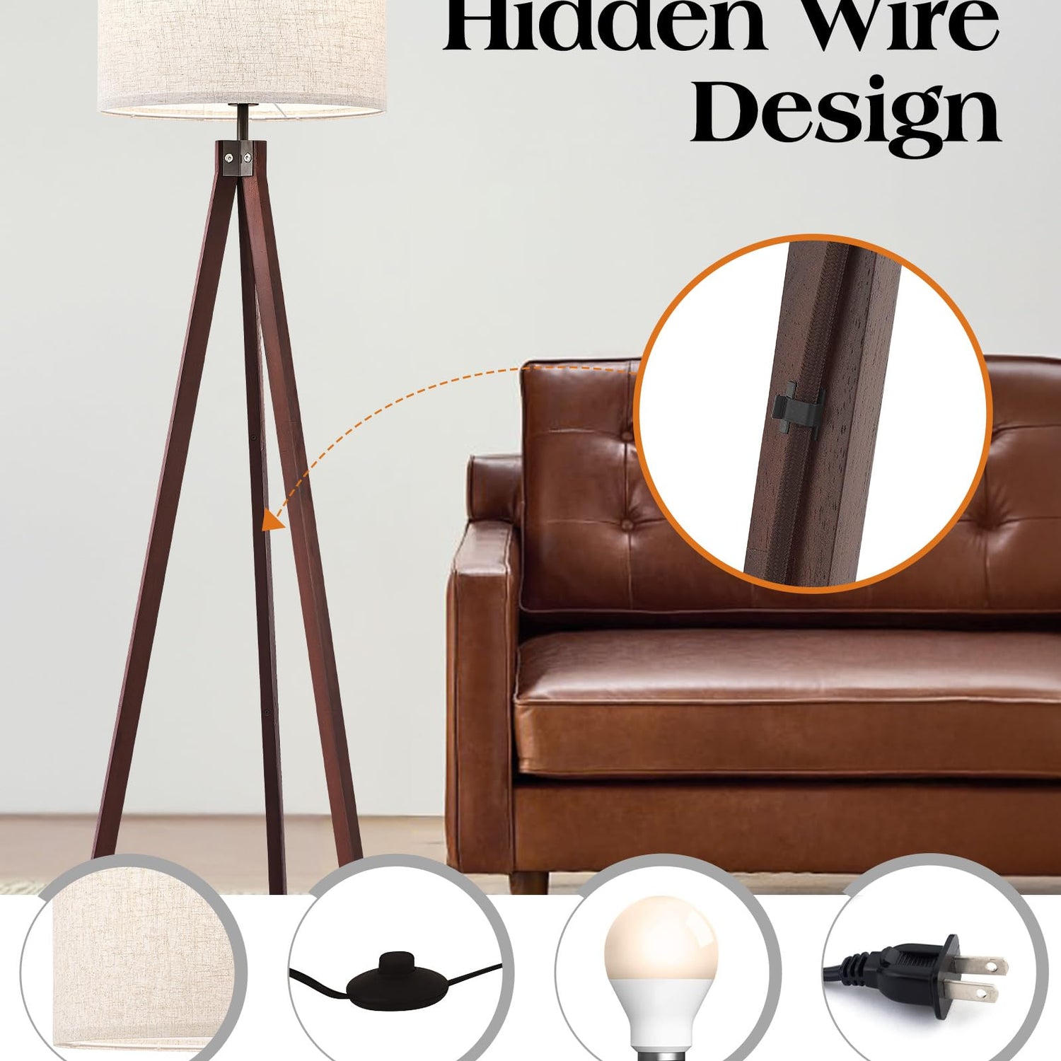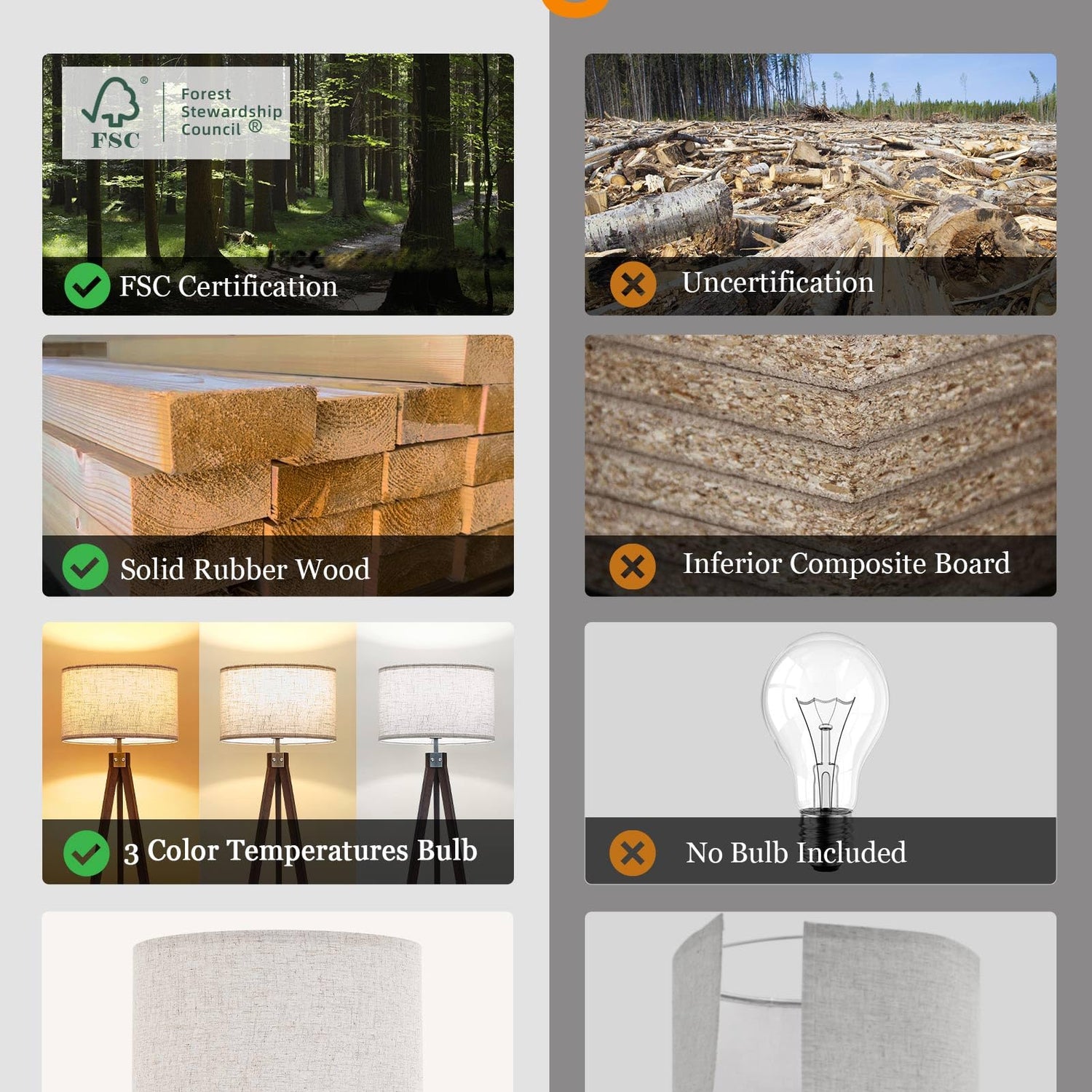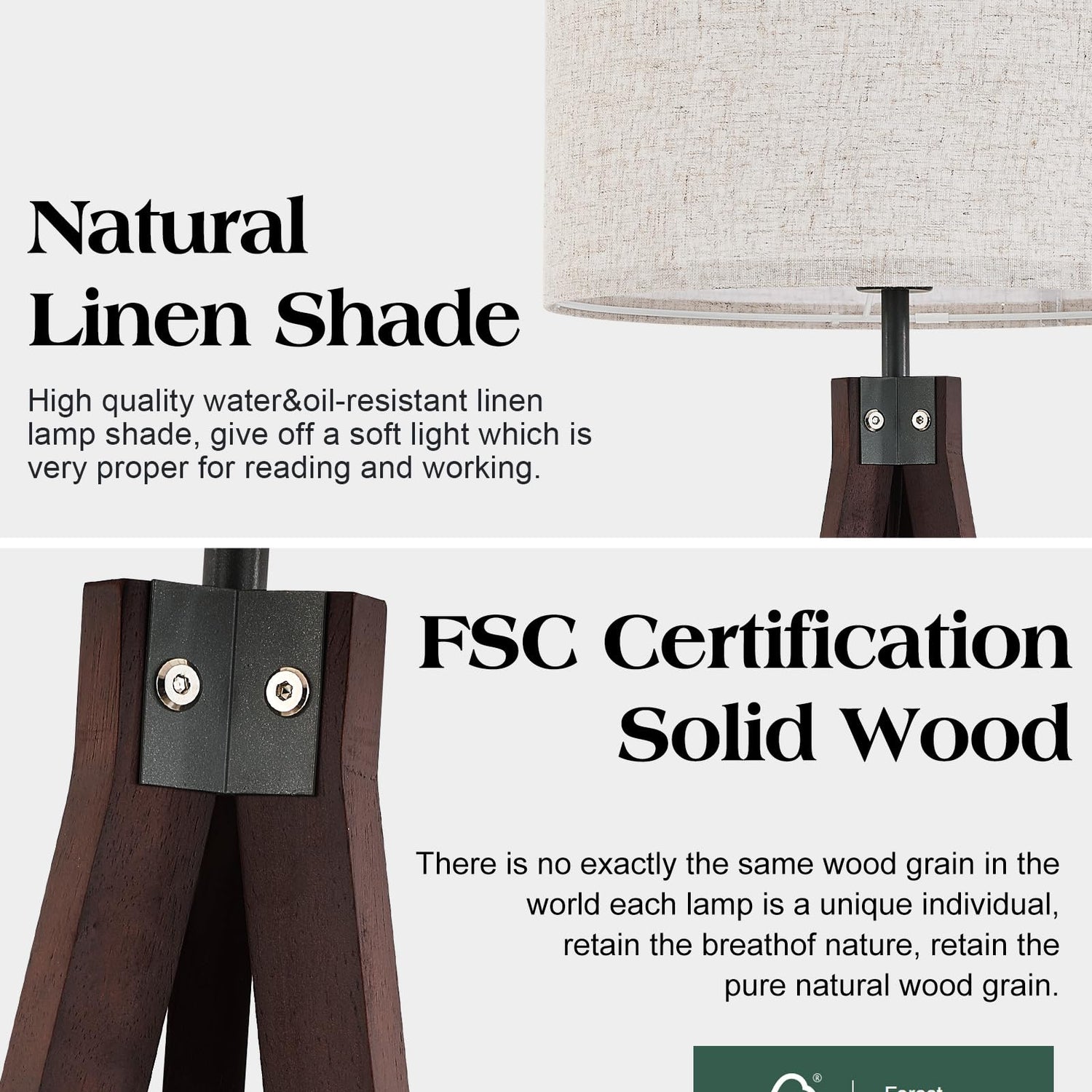- 【Vintage Solid Wood Floor Lamp & Sturdy Tripod Legs 】There is no exactly the same wood grain in the world,each lamp is a unique individual,retain the breath of nature,retain the pure natural wood grain. ELYONA Tripod Floor Lamp is hand-painted walnut wood color,ideal for farmhouse,industrial,country.The classic triangular design ensures a sturdy structure,making it highly suitable for households with children or pets to prevent accidental collisions that could cause the lamp to topple over