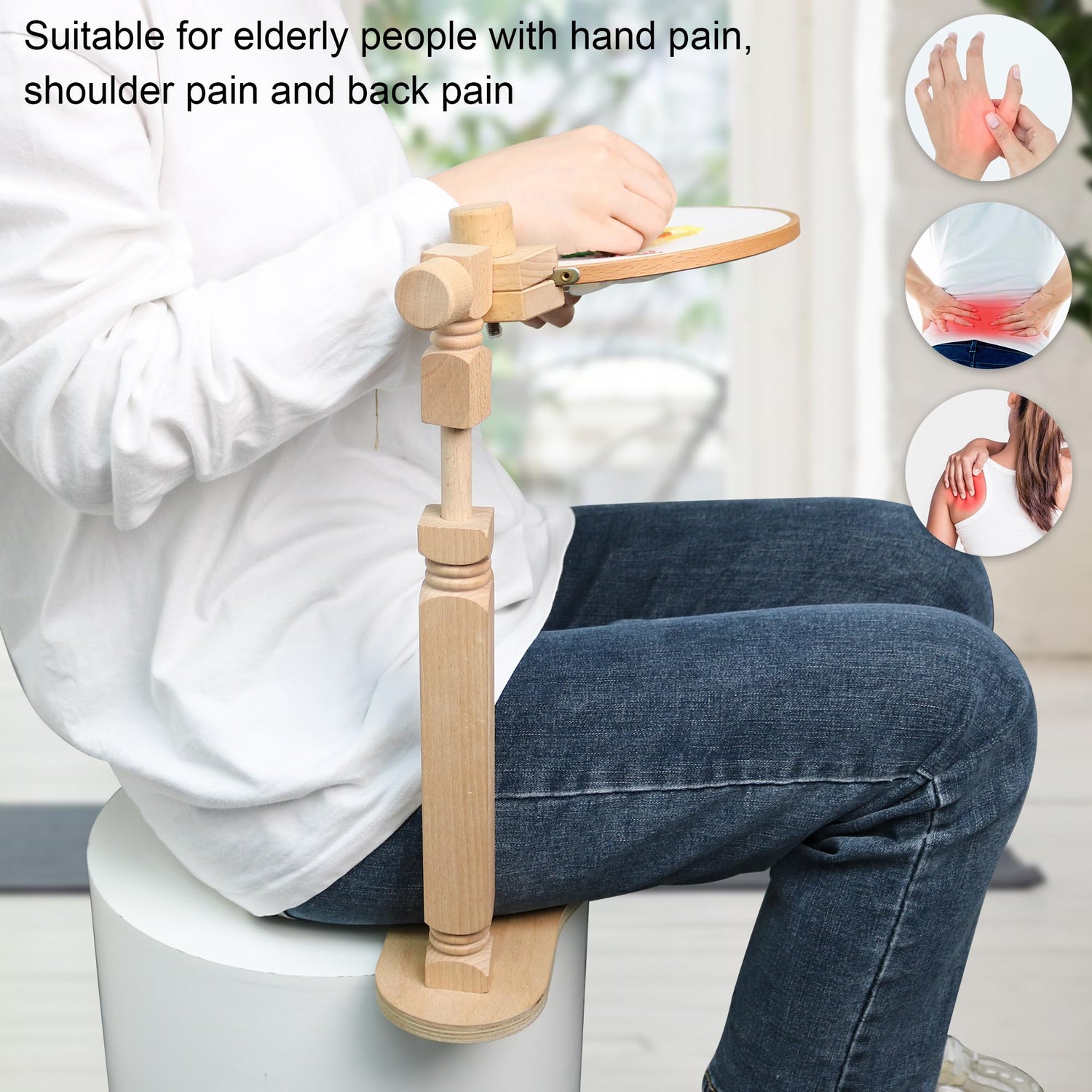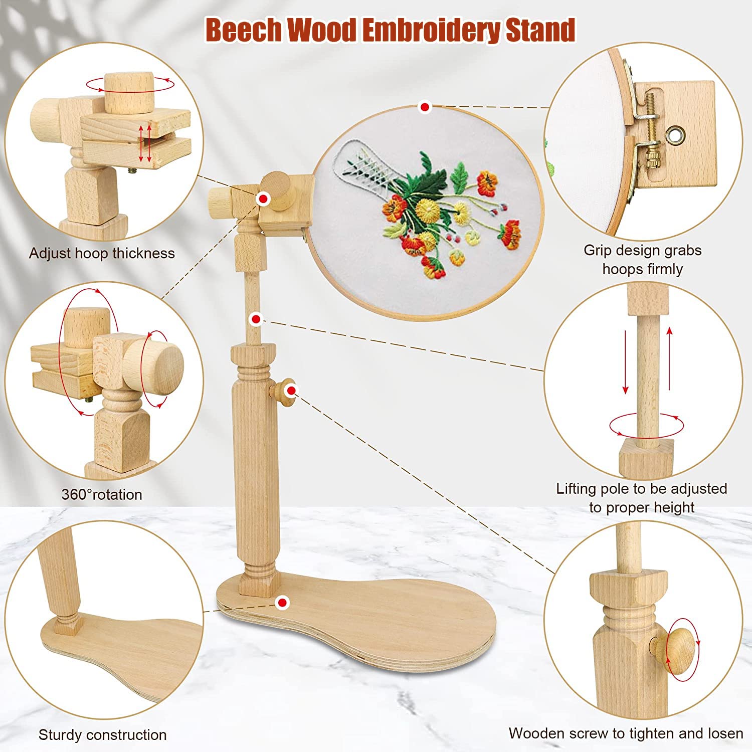 Embroidery Hoop Stand - Rotated Cross Stitch Stand Lap, Easy to Use Natural Beech Wood Embroidery Hoop Holder, Hands Cross Stitch Stand for Art Craft Sewing Needlework Projects