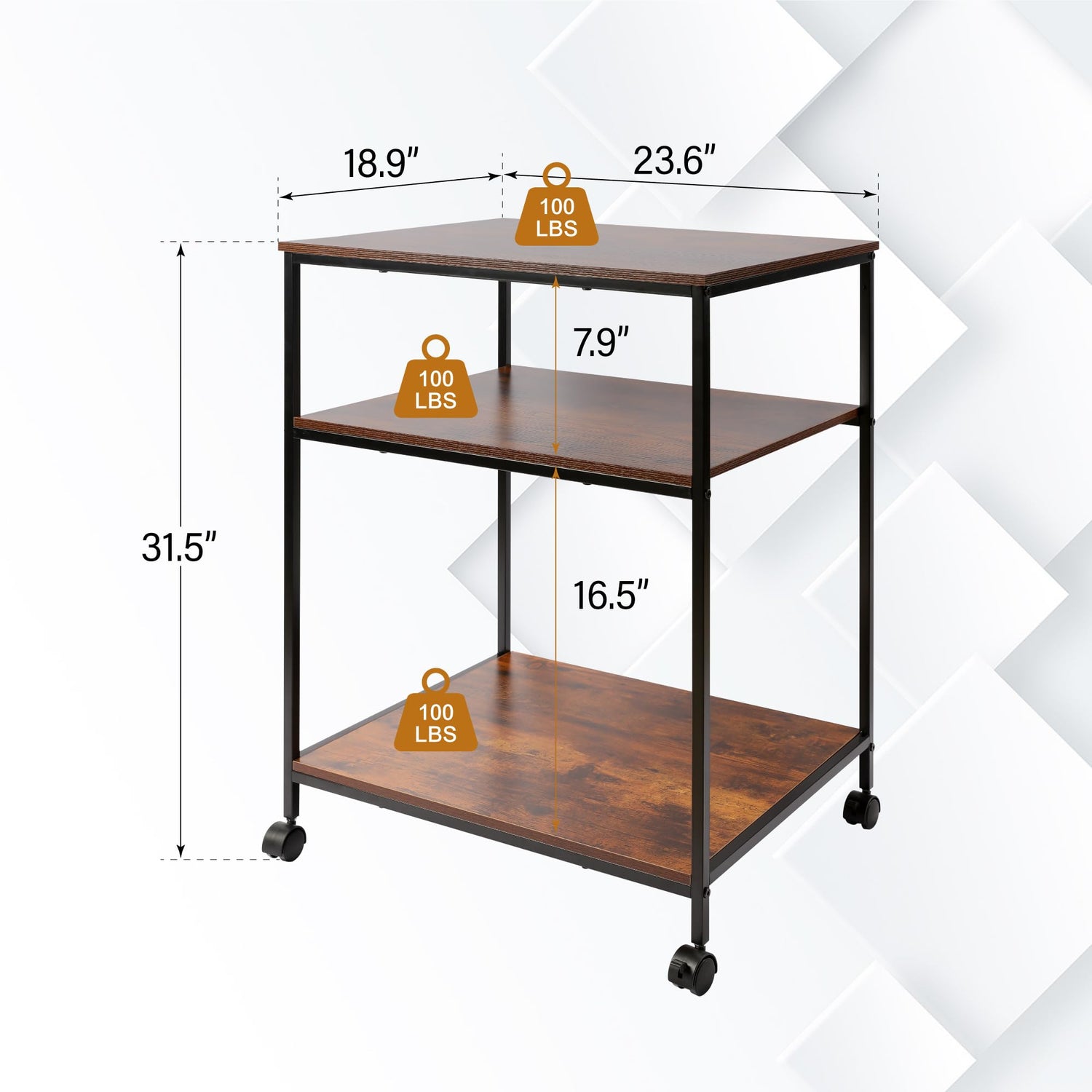 - 【Large Printer Stand with Storage】With overall product dimensions 23.6"W x 18.9"D x 31.5"H and weight capacity of 100lb on each tier, this stand is designed specially for large and heavy printer, scanner and other bulky machinery. Meanwhile, 5 tier storage shelves offer spacious room to keep paper, toner and other office supplies organized and within your reach whenever you are working or studying.