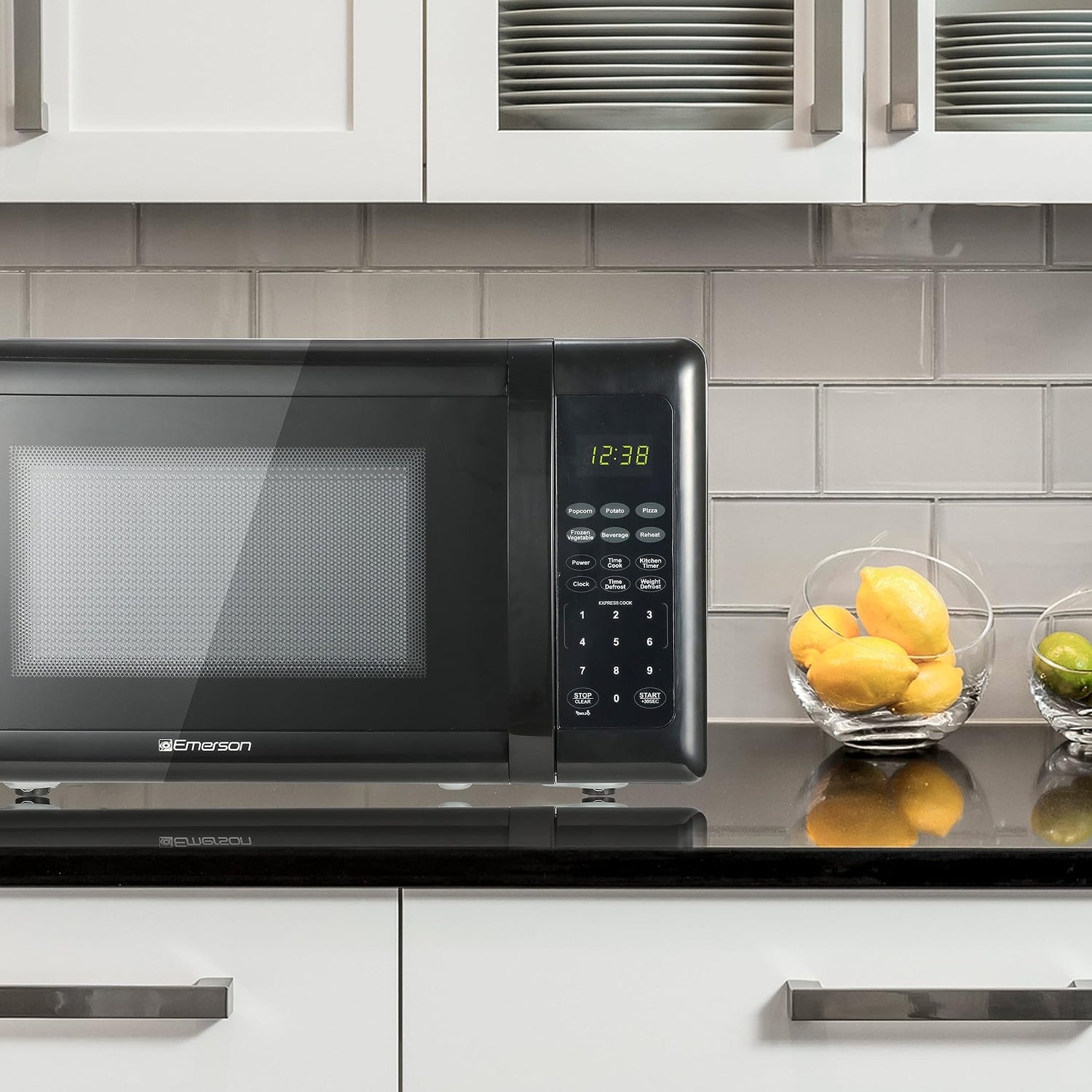 Emerson MW7302B Compact Countertop Microwave Oven with Touch Control, LED Display, 700W, 10 Power Levels, 6 Auto Menus, Glass Turntable and Child Safe Lock, 0.7 Cu., Ft. Black