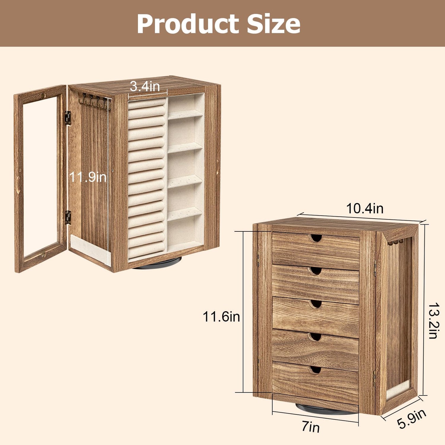 - Perfect Size and Gift Idea: This jewelry storage measures 10.4"L x 5.9"W x 13.5"H that doesn’t take up a lot of space and perfectly fit any counter. Regardless of the occasion, age, or relationship, this 360° rotating jewelry case will surely bring a dazzling smile to the recipient's face