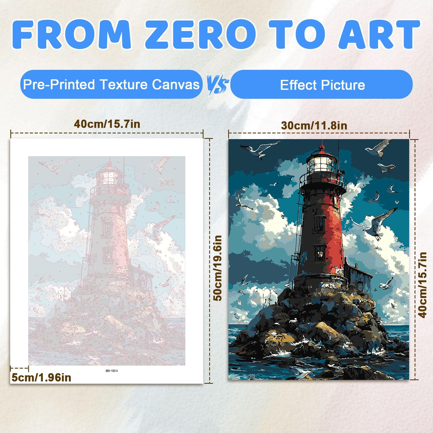 EMIEAUFG Creative Paint by Number Kit for Adults,Beacon in The Middle of The Ocean DIY Paint by Numbers Set for Home Decor and Gifting - 12x16 Inch