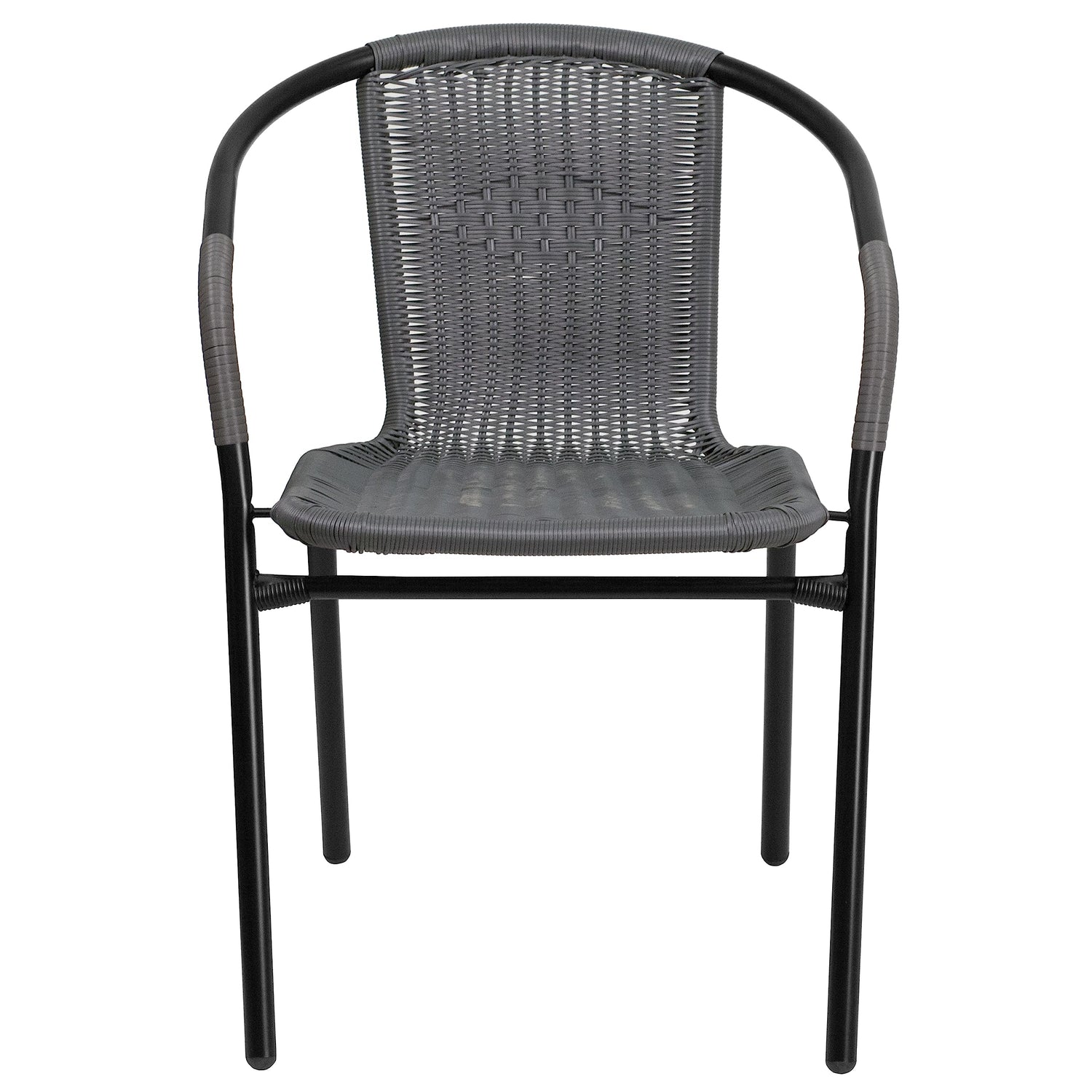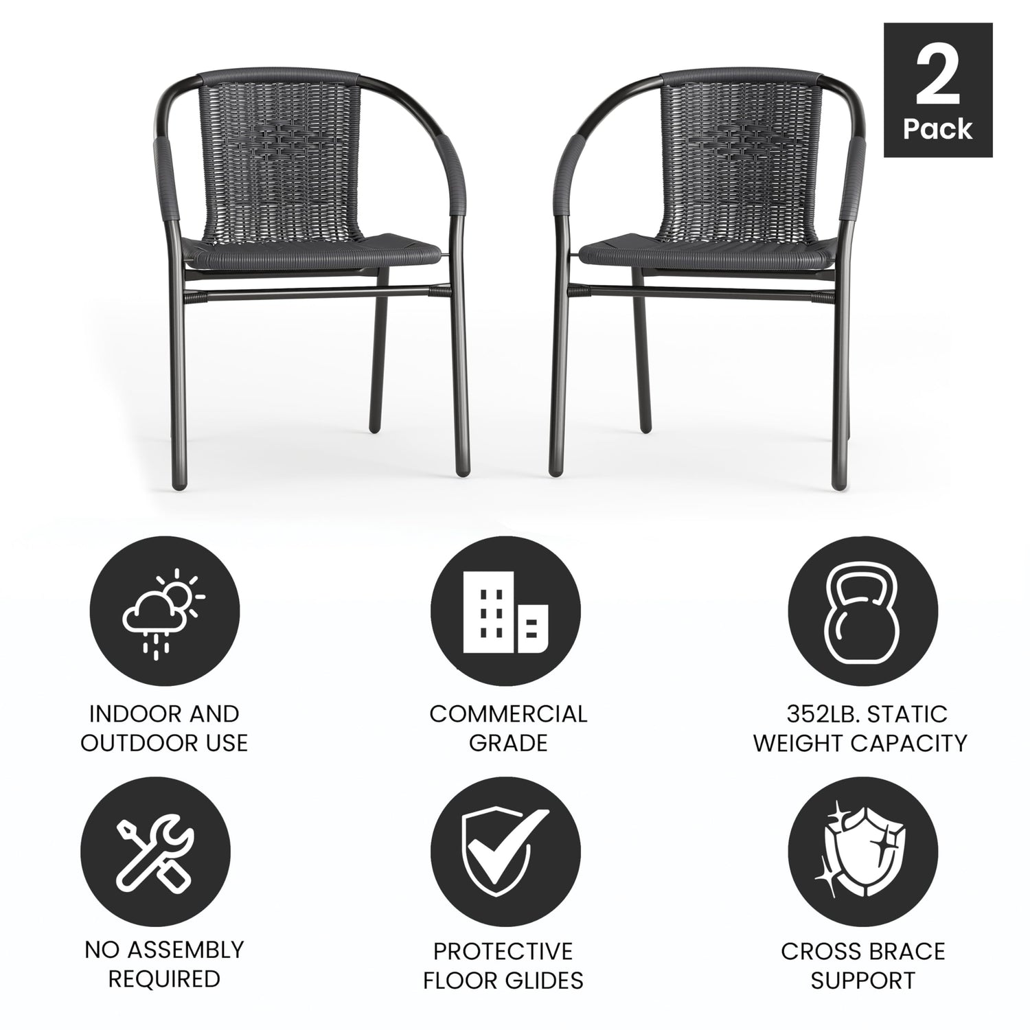 EMMA + OLIVER 2 Pack Gray Rattan Indoor-Outdoor Restaurant Stack Chair with Curved Back