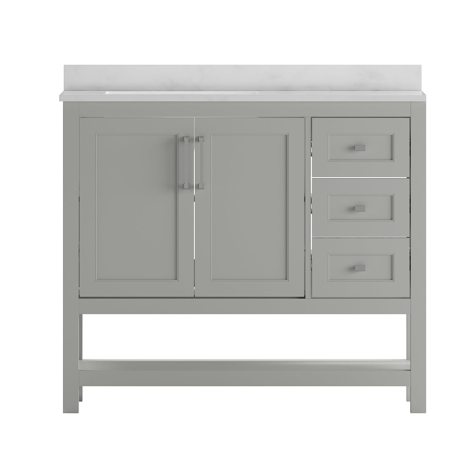 EMMA + OLIVER Vesta 42 Inch Bathroom Vanity, Single Sink Cabinet with 2 Soft Close Doors, Open Shelf and 3 Drawers, Carrara Marble Finish Countertop, Gray