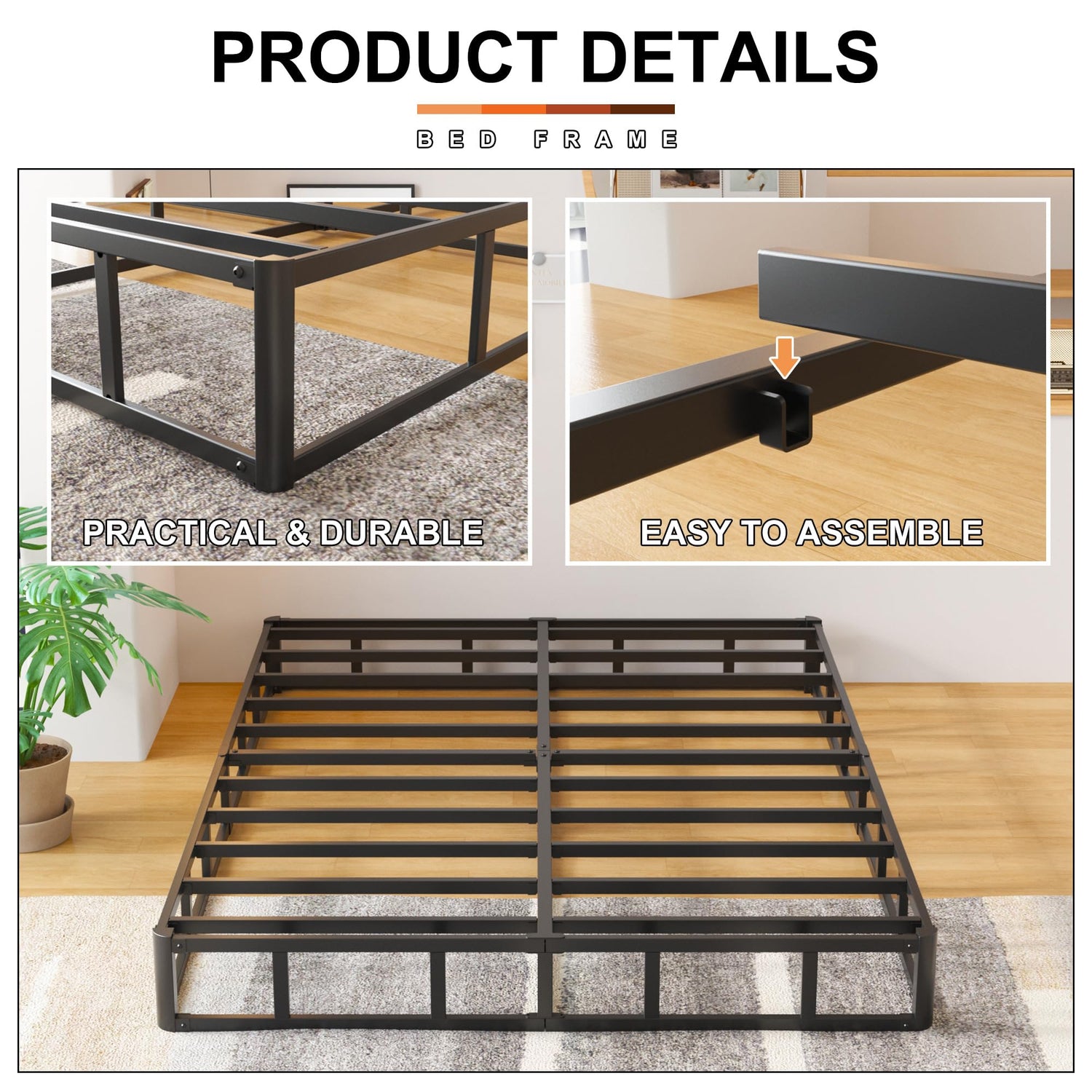 - Heavy-duty and stable metal box springs can support up to 3000 LBS.