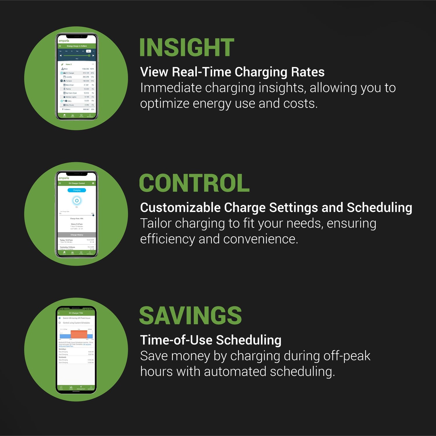 - Get the Benefits of Smart Charging: Connect via 2.4 GHz WiFi to access real-time energy data and manage charging from your mobile device. Schedule charging sessions to optimize utility rates and performance.