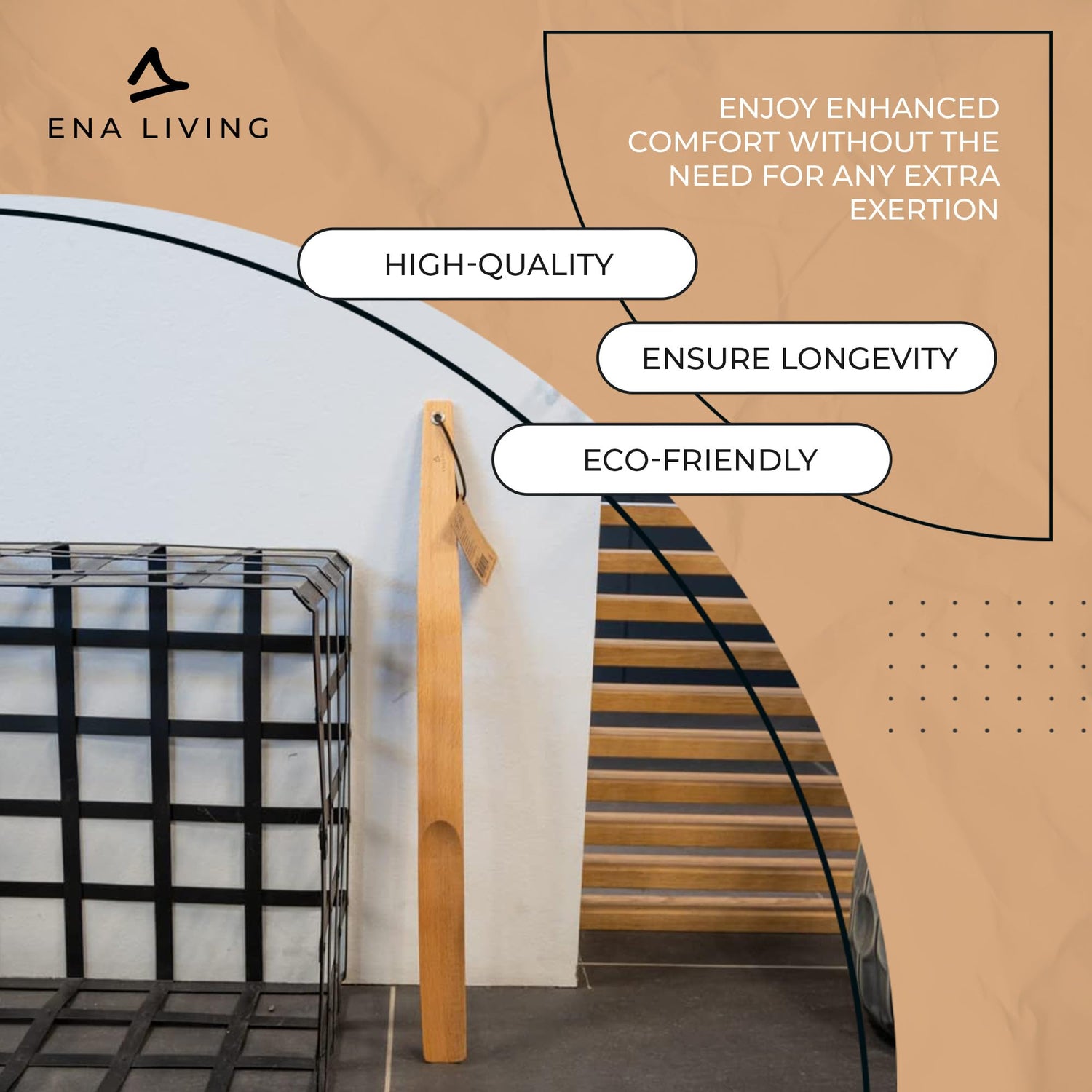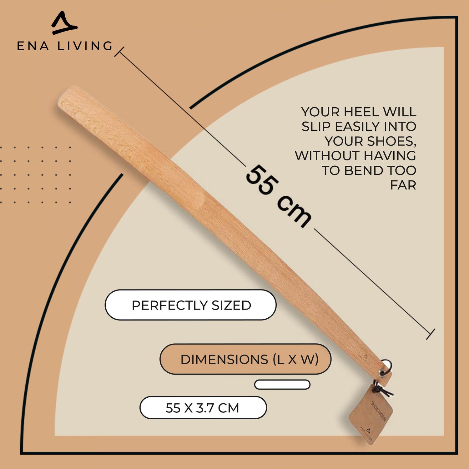 ENA Living Beechwood Shoe Horn, 21.6” Long Handle for Seniors, Smooth & Sturdy, Extra Long Shoe Horn for Your Comfort, Use As A Back Scratcher, Long-Handled Shoe Horn, Long-Lasting