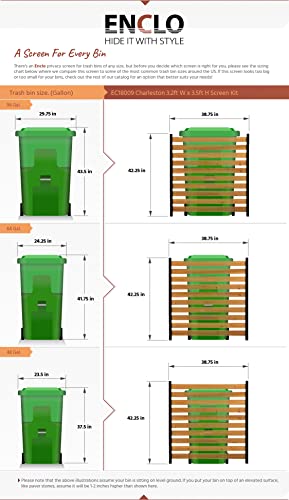 Enclo Privacy Screens EC18009 Charleston Wood Outdoor Privacy Fence Screen Slatted No-Dig Kit 38" W x 42" H, 2 Panels