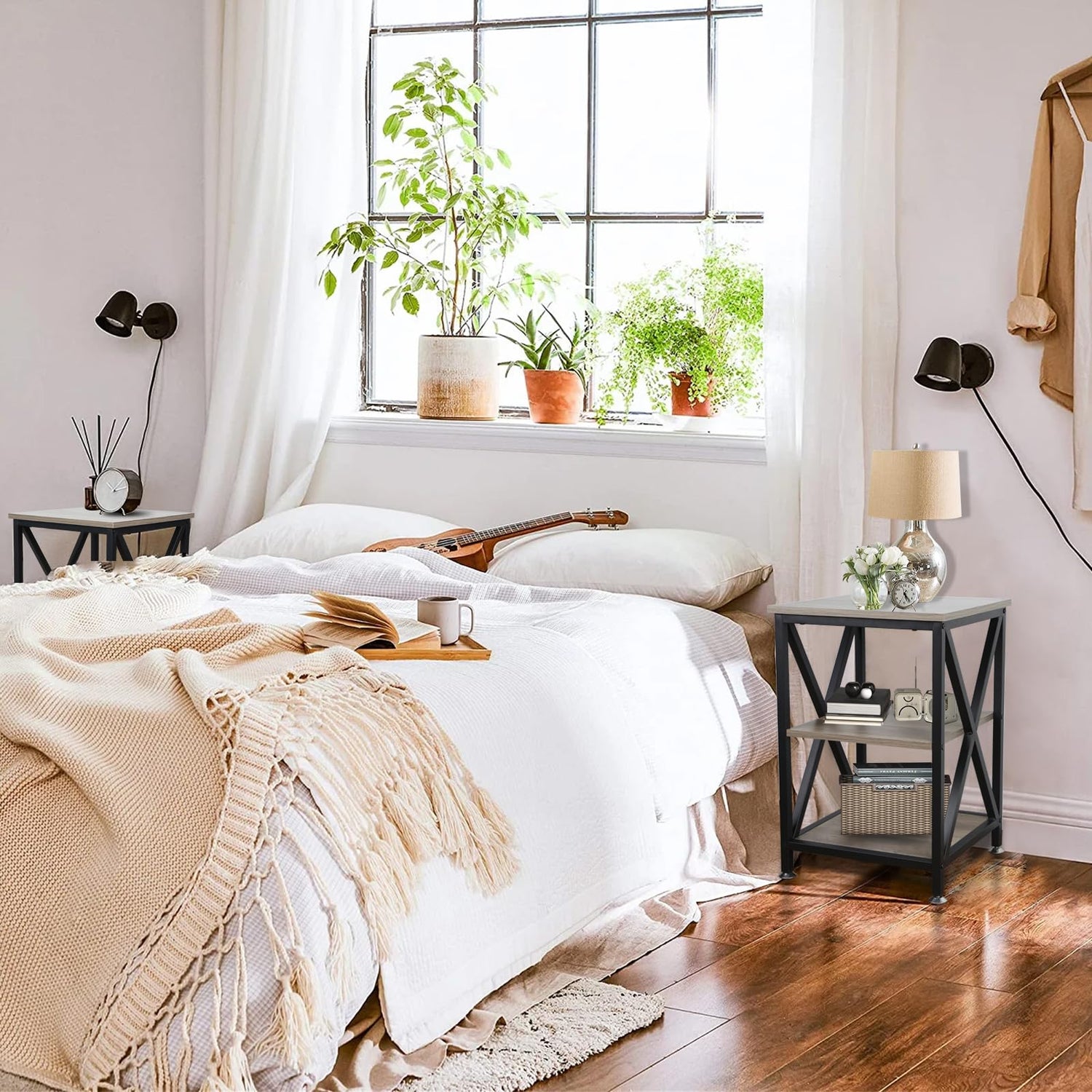 - 【Side Tables Living Room Set of 2】3-tier end tables design with stable X-shaped structure, perfect as a couch end table, bedside companion, coffee table, book display, or remote organizer.