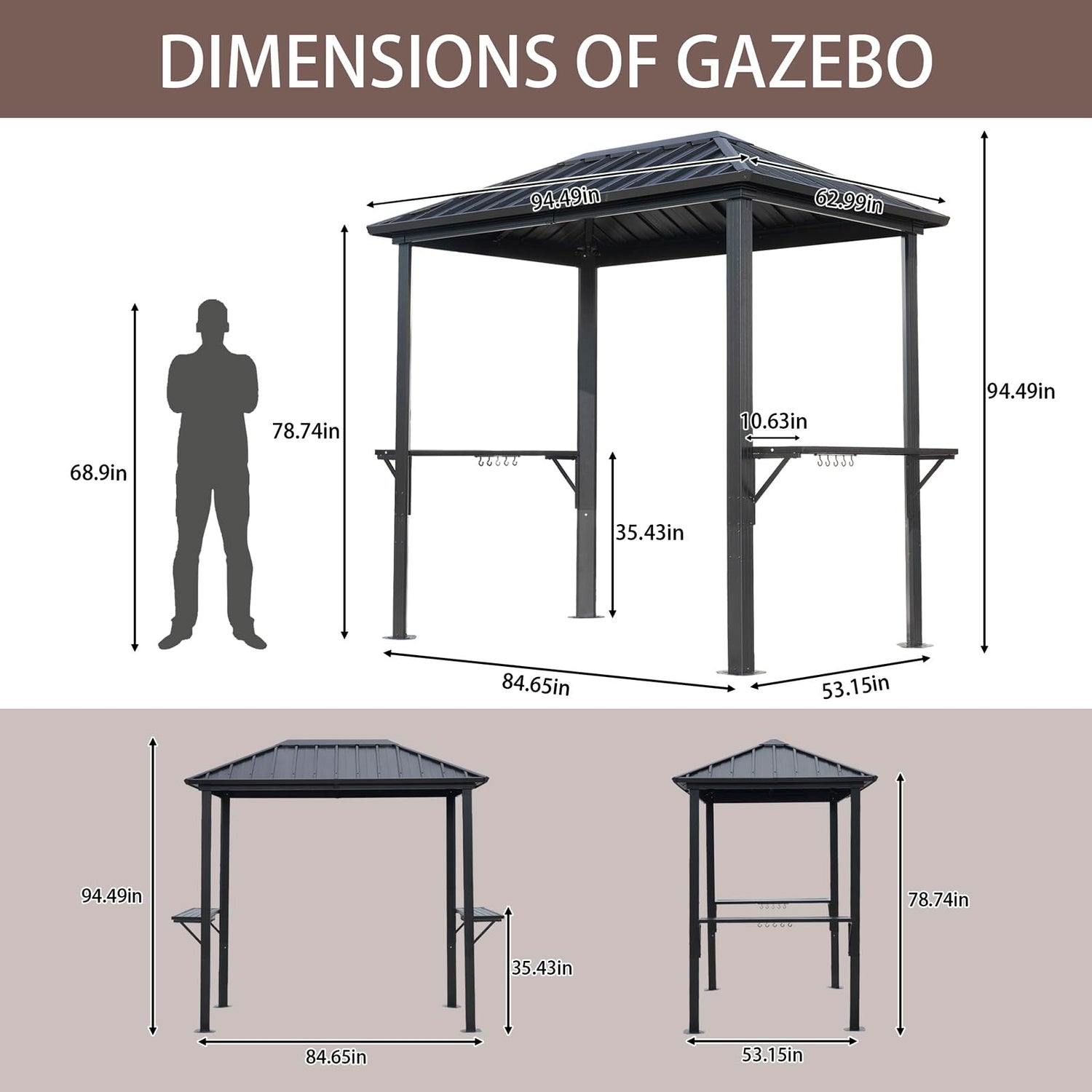 - 【PRACTICAL AND WIDE USAGE】The product can be used for various purposes like hosting outdoor gatherings, or barbecue, This hardtop grill gazebo is perfect for backyard, patio, lawn, courtyard, and other outdoor situations.