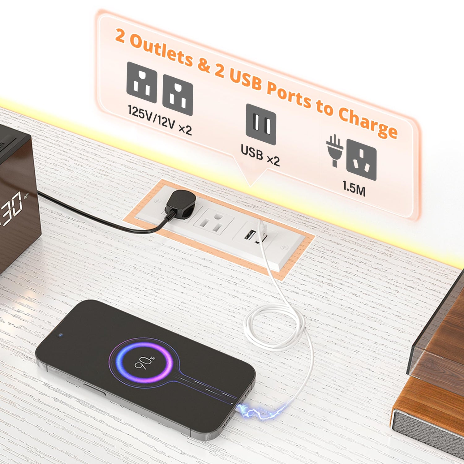 - 【Safety Power Outlet & LED Lights】Equipped with 2 power outlet & 2 usb ports, so you can easily charge your TV and other media devices without the need for extra extension cords. This long dresser for bedroom is equipped with 21 colors, 22 dynamic modes, 10 flicker frequencies, and 5 brightness grades, which can be controlled by remote control, you can freely adjust the brightness and colors for any scene to enhance the atmosphere of your room. The led lights work flawlessly with remote, which offers a nice ambiance. In addition, this lights can also serve as a night light to illuminate for you when you wake up at night