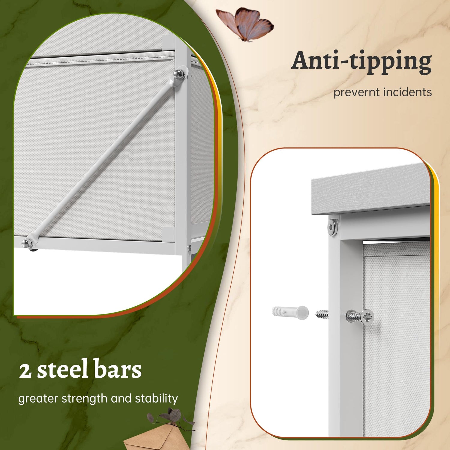 - 【Sturdy Construction】The sturdy steel frame provides stable support and ensures years of use; The anti-tipping accessories prevent the wardrobe from tipping over.The 4 adjustable feet can protect your floor from scratches.The quality fabric drawers are breathable and applied