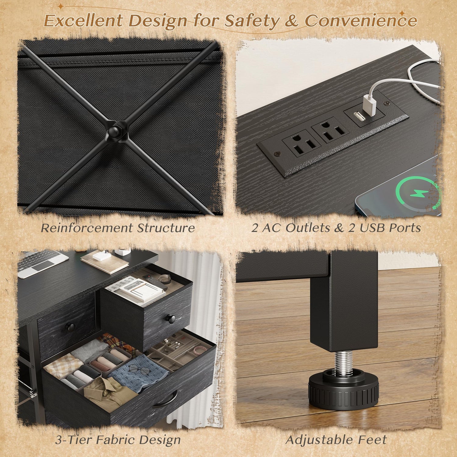 - 【Convenience with Charging Station】Power your devices effortlessly with this tall dresser's built-in station, featuring 2 outlets and 2 ports. Ideal for charging TVs and media gear without extra cords, this fabric dresser keeps your space organized.