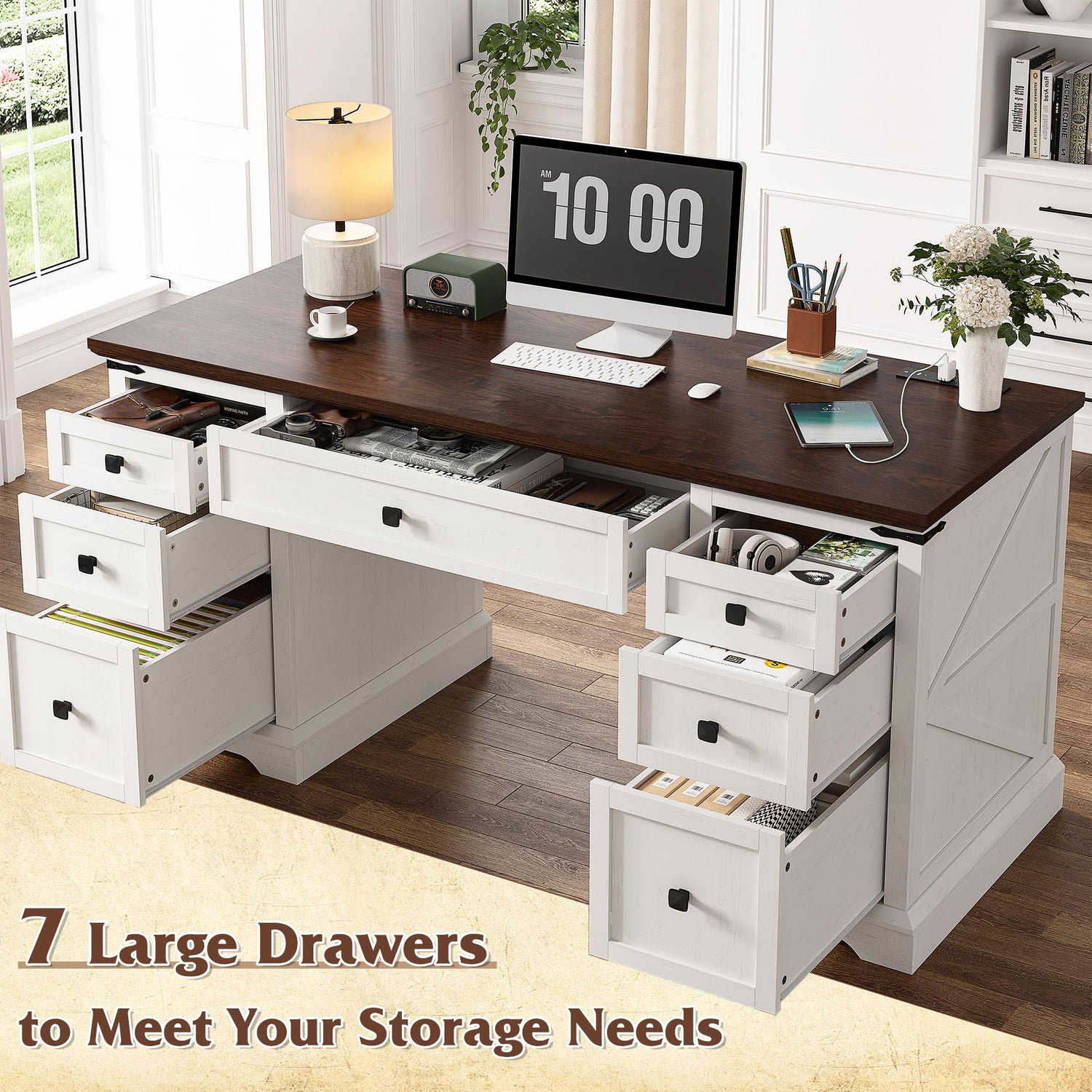 - 7 Drawers Provide Plenty of Storage Space & Classified Storage: Equipped with 7 drawers, this executive desk offers convenient organization options to keep your workspace tidy and clutter-free. The farmhouse desk has 4 different sized drawers, the small drawers are perfect for stashing away pens, notebooks, and other small items, while the larger drawers provide a discreet spot for larger belongings or files