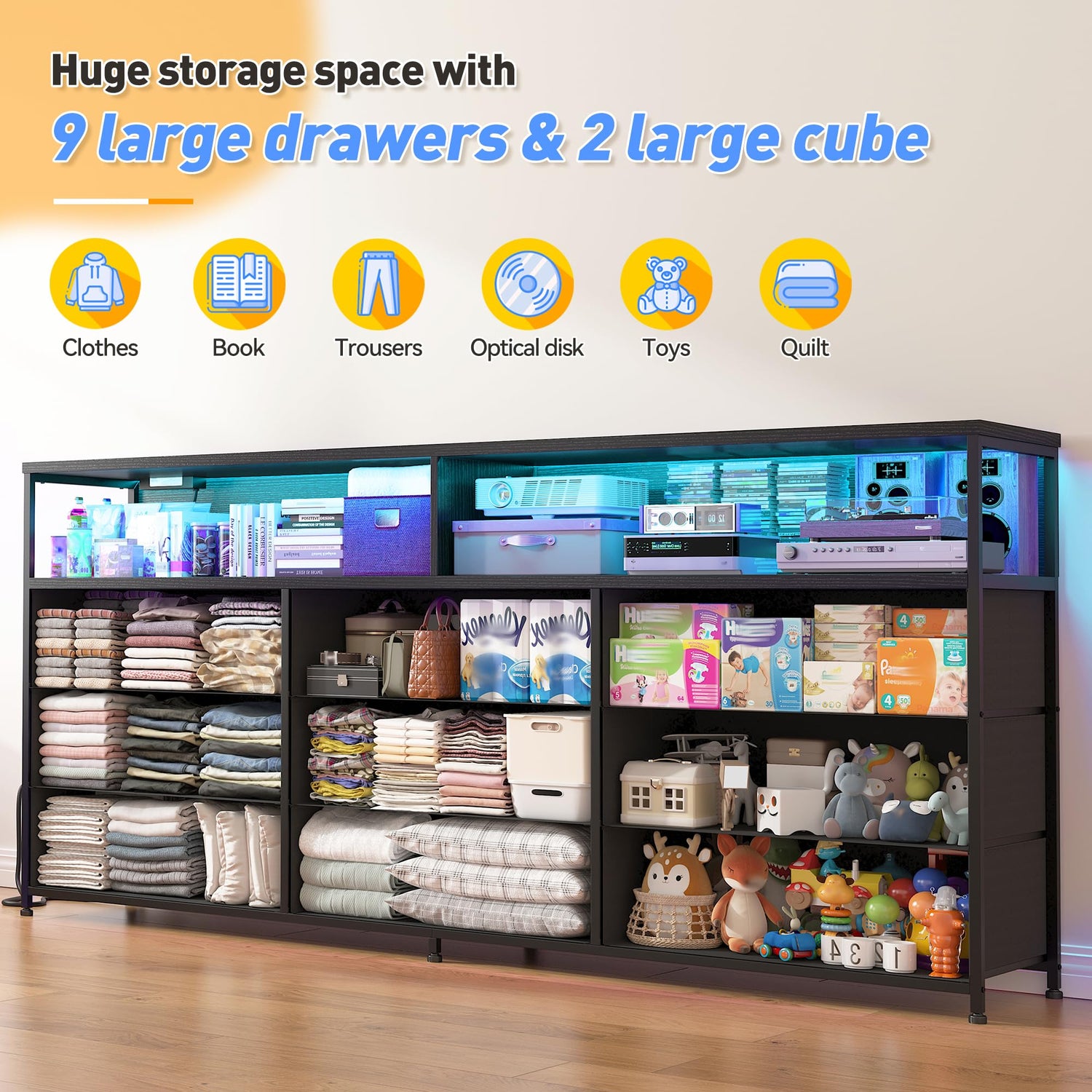 EnHomee 55" W Dresser TV Stand with Power Outlet & Lights for 65" TV, Dresser for Bedroom with 9 Fabric Drawers, TV Stand for Bedroom Dressers Console Table 55''W*11.8''*35.5'', Charcoal Black