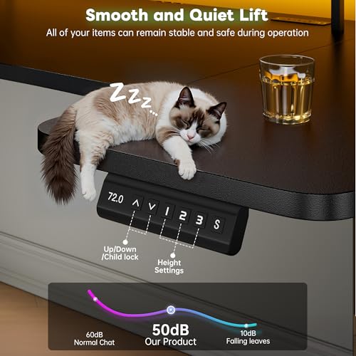 - 【Smart Electric Height Adjustment】The electrically adjustable standing computer desk can be freely set in height from 29.3 inches to 48.3 inches. When you have been sitting for a long time, you can stand up to stretch your body and work or study standing up. Meanwhile, the table is equipped with a built-in memory button, allowing you to freely set the commonly used height while also operating silently