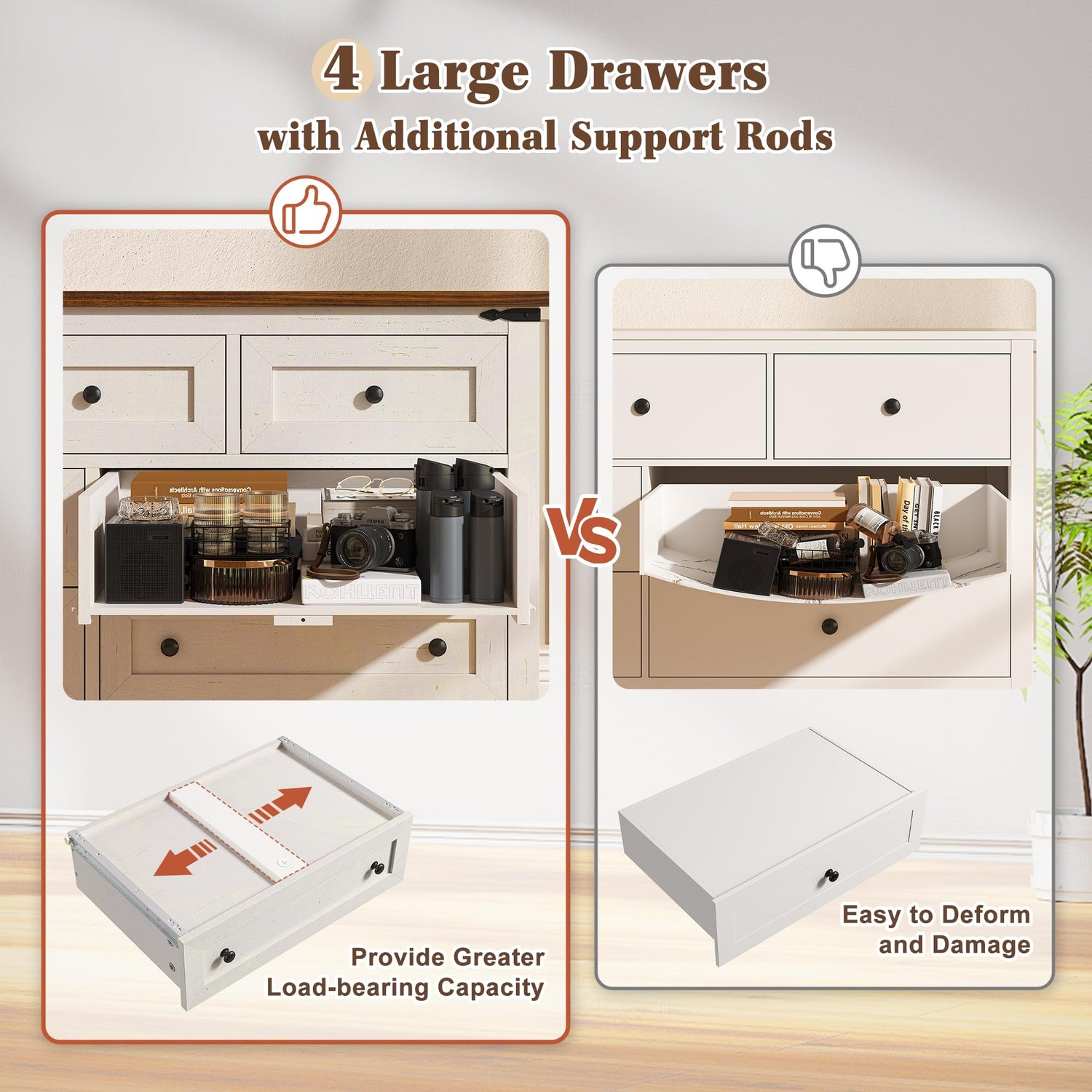 EnHomee Dresser for Bedroom Wood Dresser with 7 Drawers White Dresser with Smooth Metal Rail Long Dressers & Chests of Drawers Farmhouse Dresser for Bedroom Dresser TV Stand, Closet, Antique White