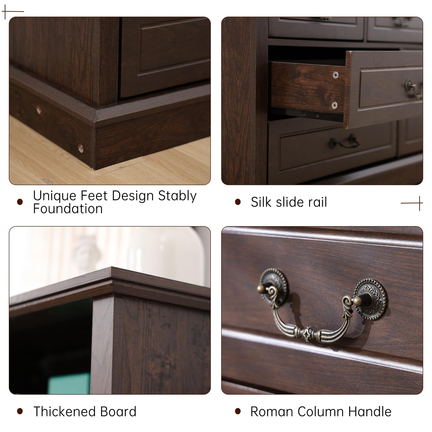 - 【Farmhouse Wood Dresser】The natural texture of the wood brings a sense of authenticity and character to your living space, while the vintage design adds a touch of nostalgia and style. Designed with embossed textures and beveled edges on the furniture exterior, our Long dresser for bedroom exude sophistication and elegance. The Roman column-style handle provides a classic finishing touch, making it the perfect storage solution for your bedroom essentials.