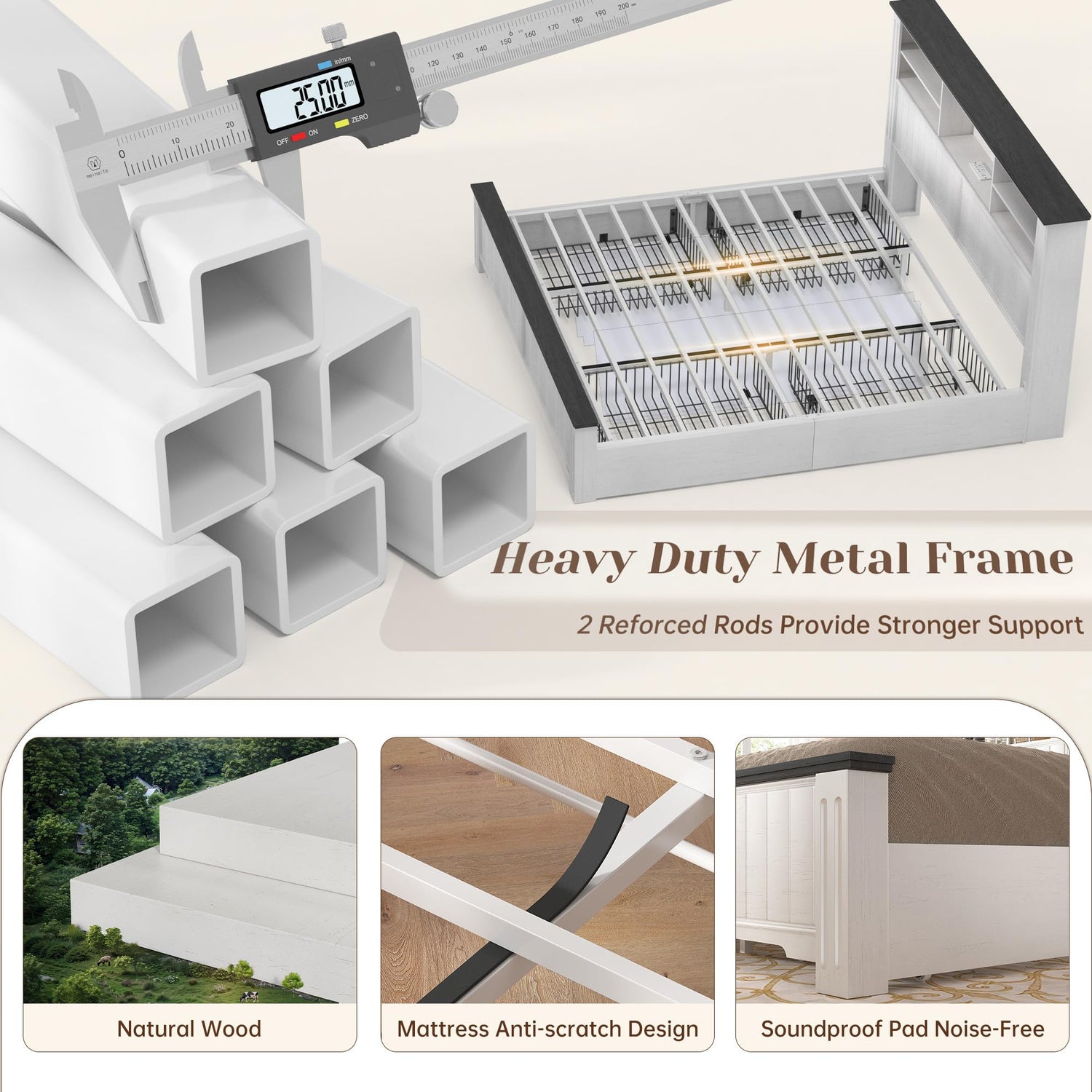 - 【NO Noise & No Box Spring Needed King Bed Frame with Headboard】 On the King bed frame with storage we made a mute sponge strip design, and we used the pasting method to fastened the supporting wooden slats to effectively prevent the bed framewith storage from creaking, our King size bed frame ensure your healthy sleep. We don't need box Spring for this upholstered bed frame King. This link is for King size bed frame with storage only, mattresses need to be purchased separately.