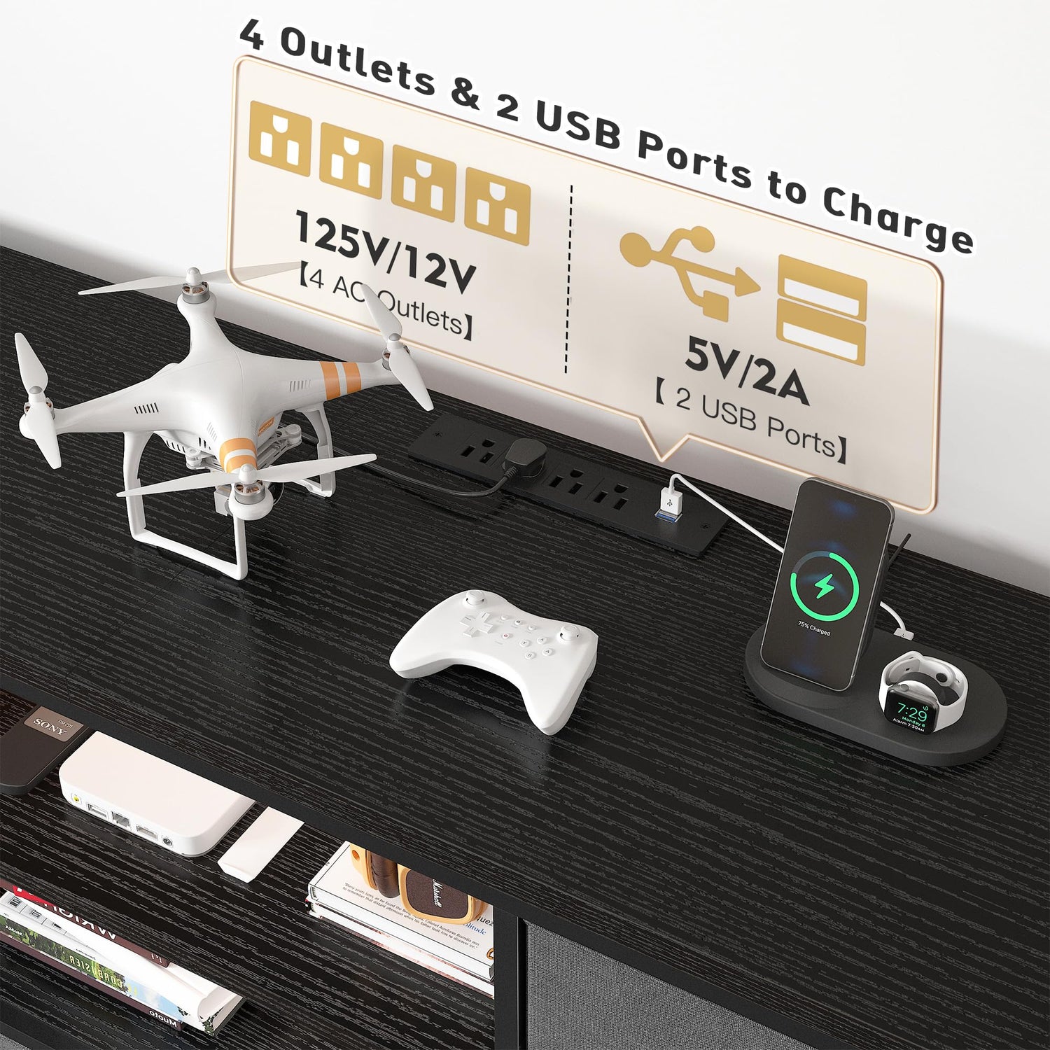 - 【Unique TV Stand with LED Light Design】Equipped with a built-in power outlet and LED light, this dresser with 12 drawers combines functionality and style. Easily control these LED lights with the included remote or app. With over 21 DIY colors to choose from, you can set the perfect lighting mood for any scene. Meanwhile this media entertainment center for 55" features built-in power outlets (4AC+2USB), allowing you to easily charge your devices without the need for extra extension cords.