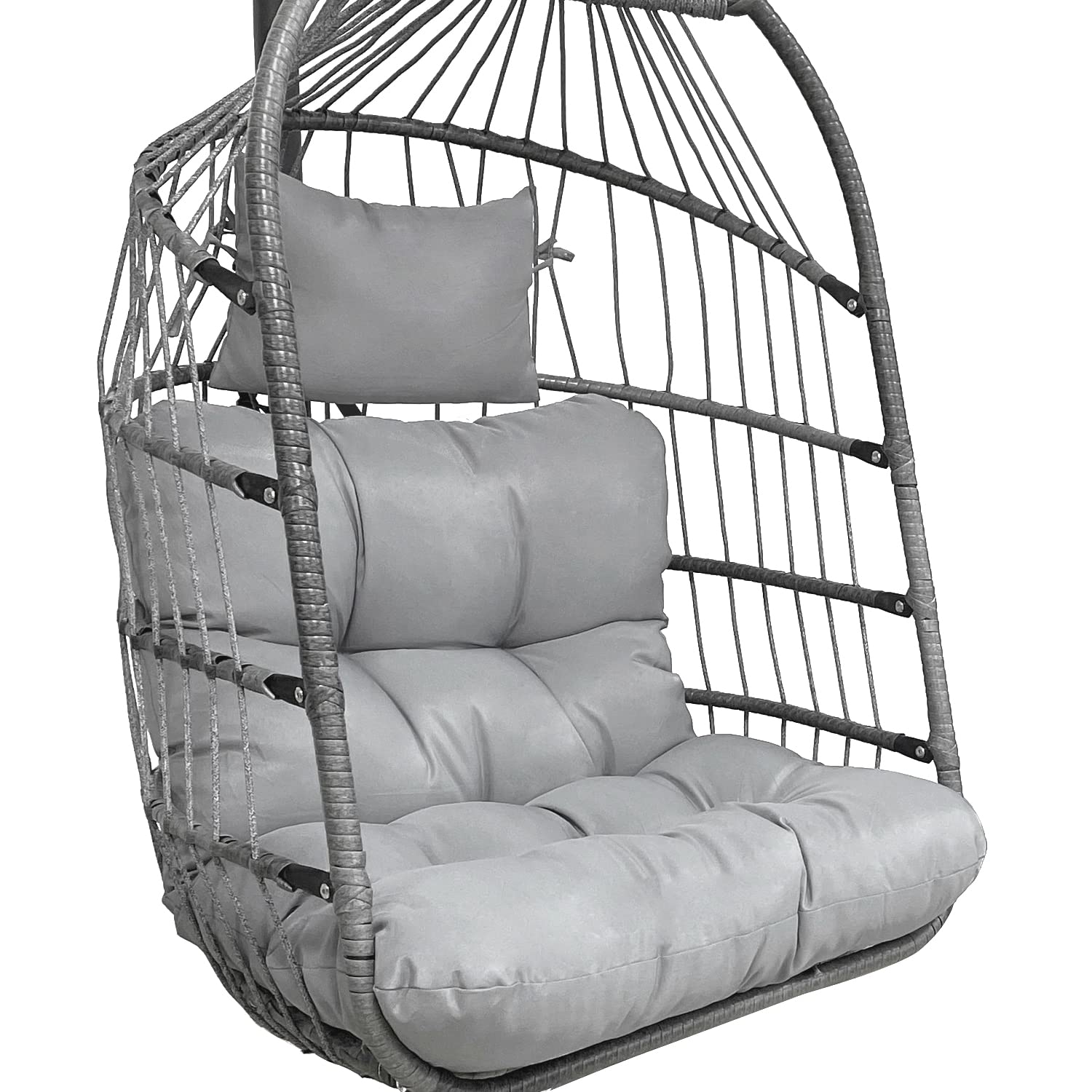 Enipate Outdoor Hanging Egg Chair Cushion, Water-Resistant Tufted Swing Basket Chairs Cushion Pads with Headrest Pillow