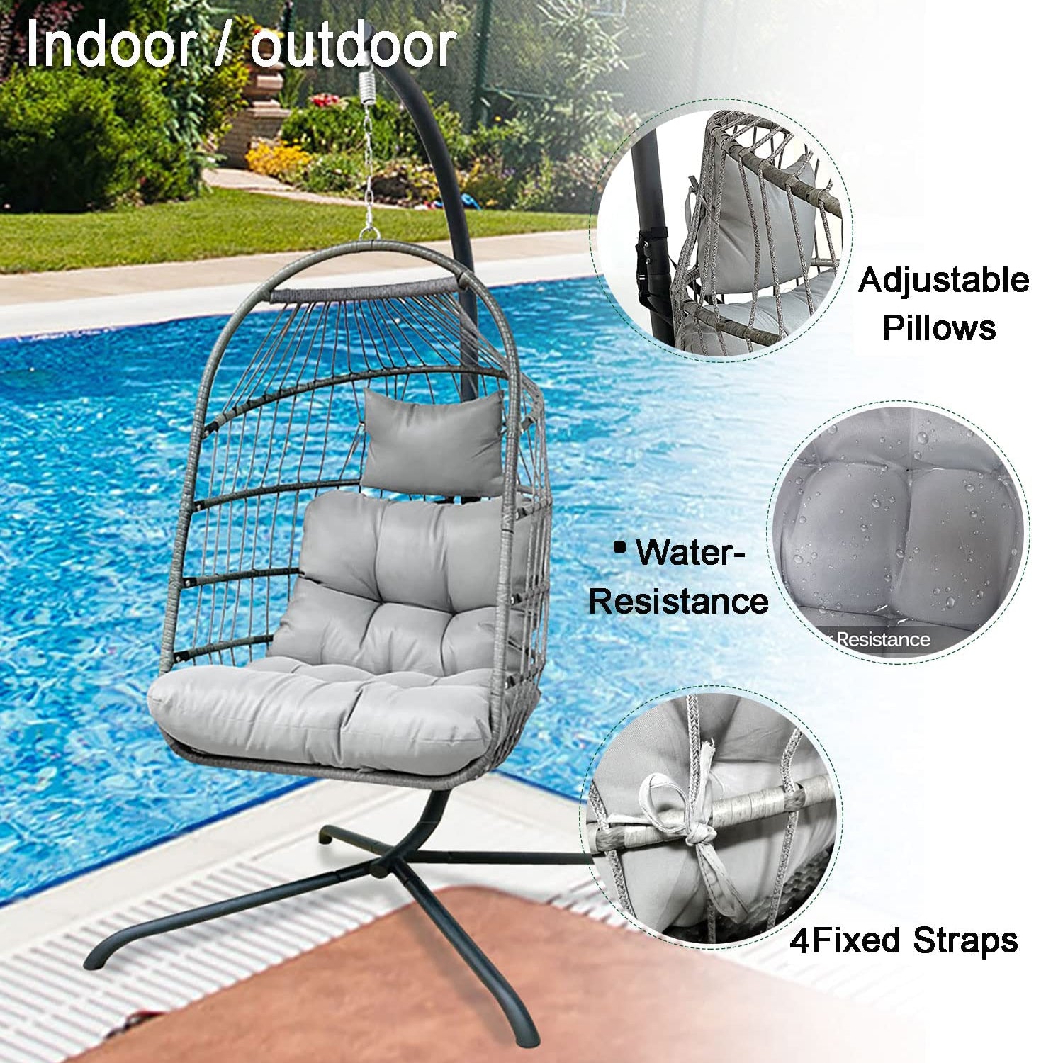 - FEATURE: 2 pcs ( cushion and pillows), Water & UV resistant fabric, Fixed strap, 6" thickness .Fit for most single swing egg chair