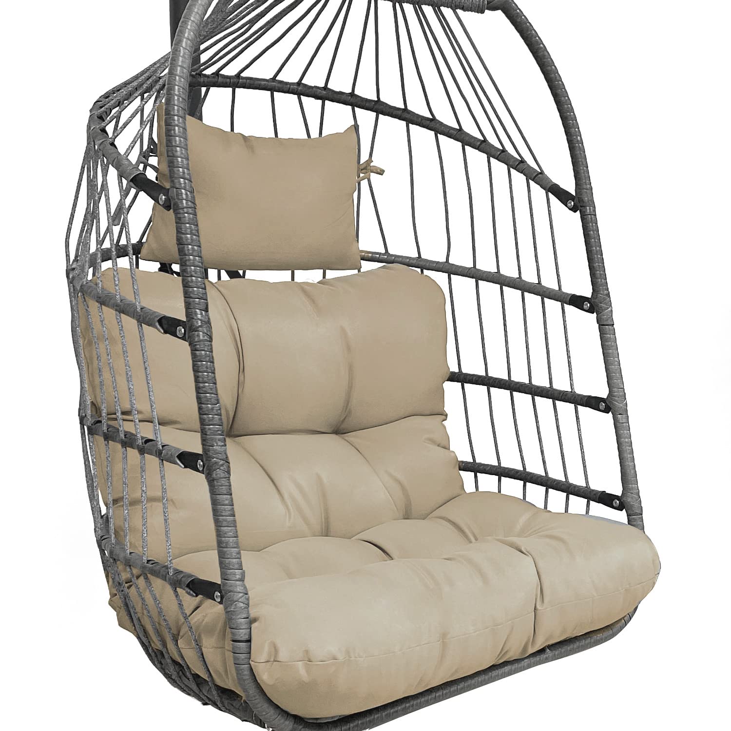 Enipate Outdoor Hanging Egg Chair Cushion, Water-Resistant Tufted Swing Basket Chairs Cushion Pads with Headrest Pillow