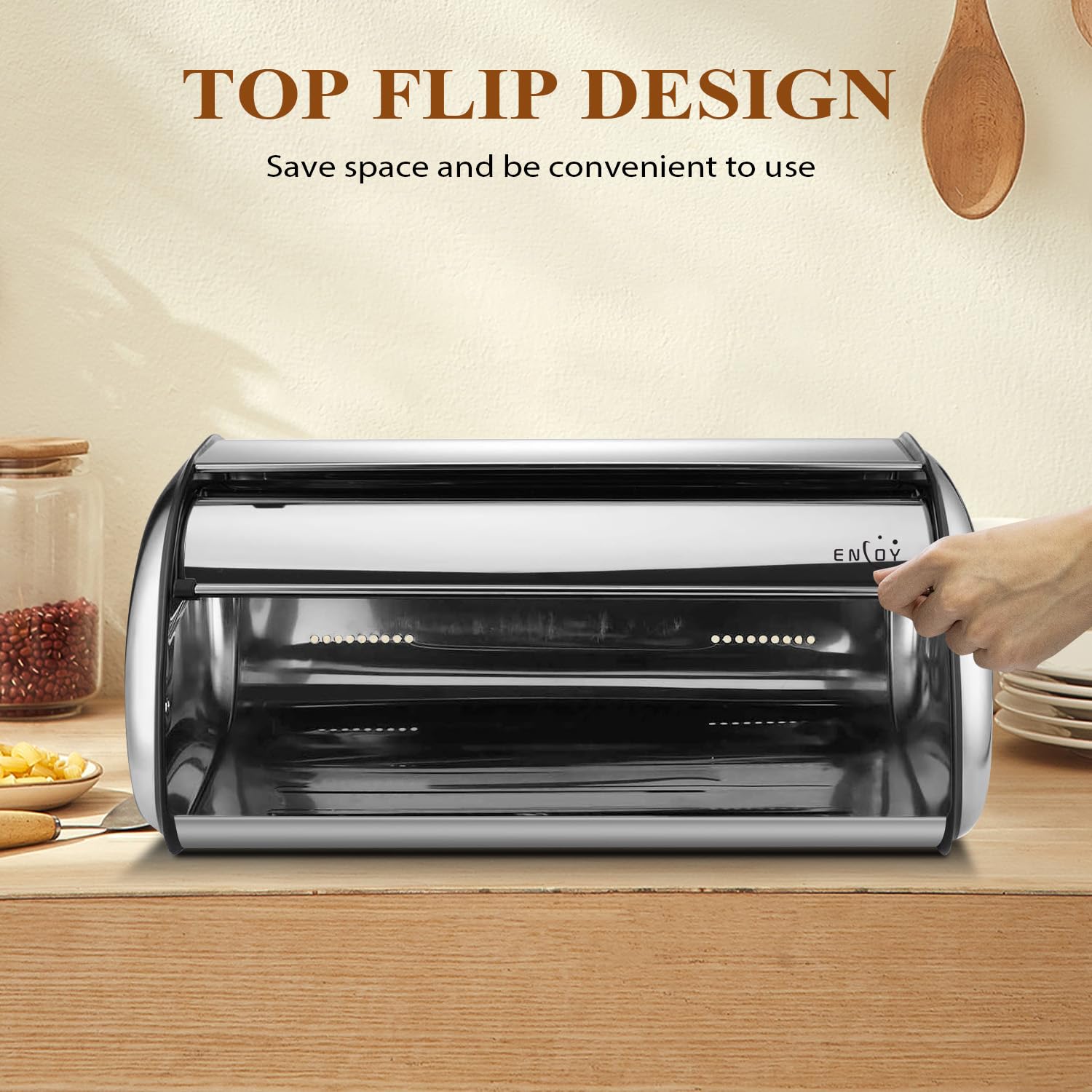 - Retro Style: Sleek and retro style will match your stainless steel appliances very well. ENLOY Bread Box's sophisticated steel design and high quality materials ensures that it will stay as good as they day you purchased it for years to come.