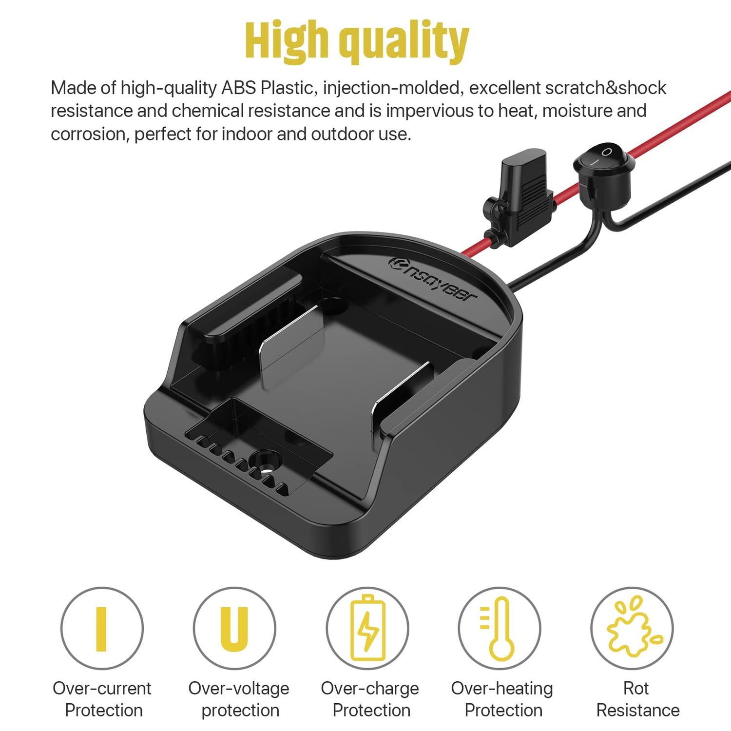 Ensayeer Power Wheel Adapter with Fuse & Switch, Secure Battery Adapter for 18V Lithium Battery, with 12 Gauge Wire, Good Power Convertor for DIY Ride On Truck, Robotics, RC Toys and Work Lights