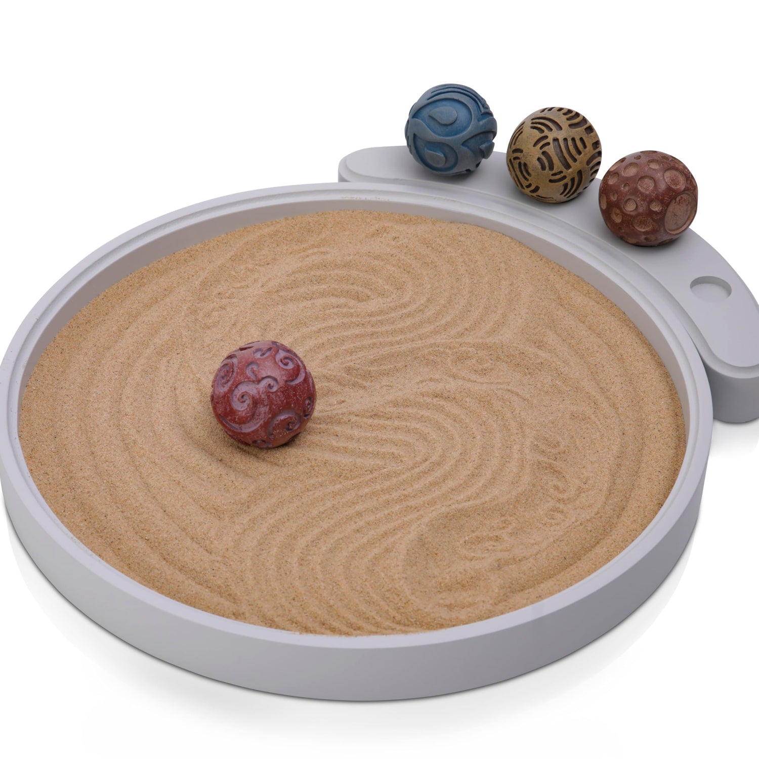 - DELIGHT YOUR SENSES - Savor mindful moments in your day. Roll the sand spheres to feel the varied textures against your fingers and watch distinct patterns unfold! This hand-crafted zen garden for desks is designed for tactile and visual play