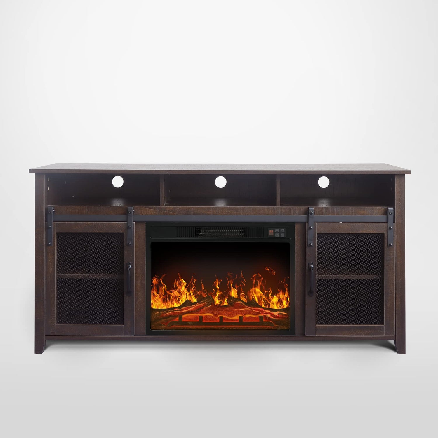 ENSTVER Fireplace TV Stand up to 65",Media Storage Electric Fireplace tv Stands for Living Room(Espresso)