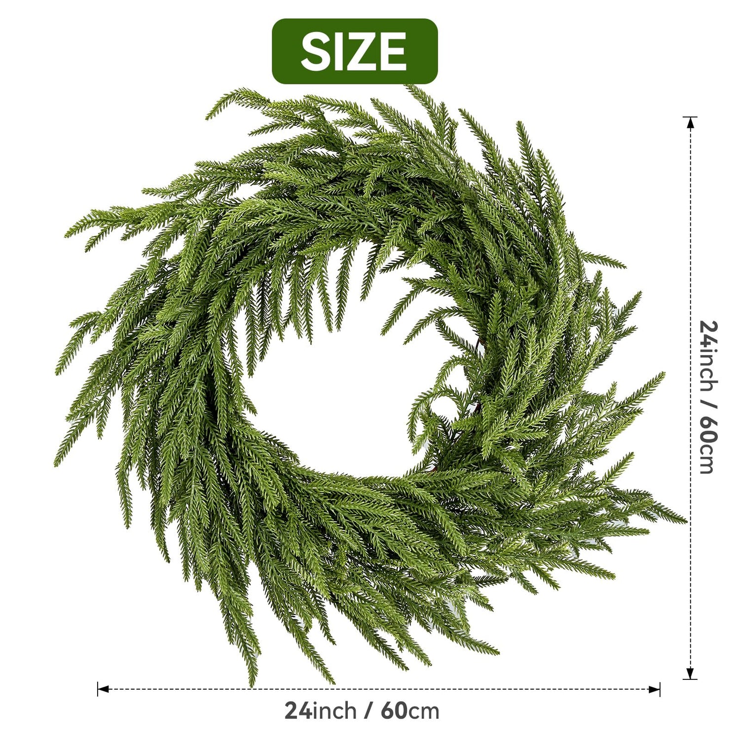 ENVEN 2 Pack 24" Norfolk Pine Wreath for Front Door, Artificial Christmas Wreath Faux Pine Green Wreath for Wall Windows Mantle Outdoor Outside Christmas Decoration