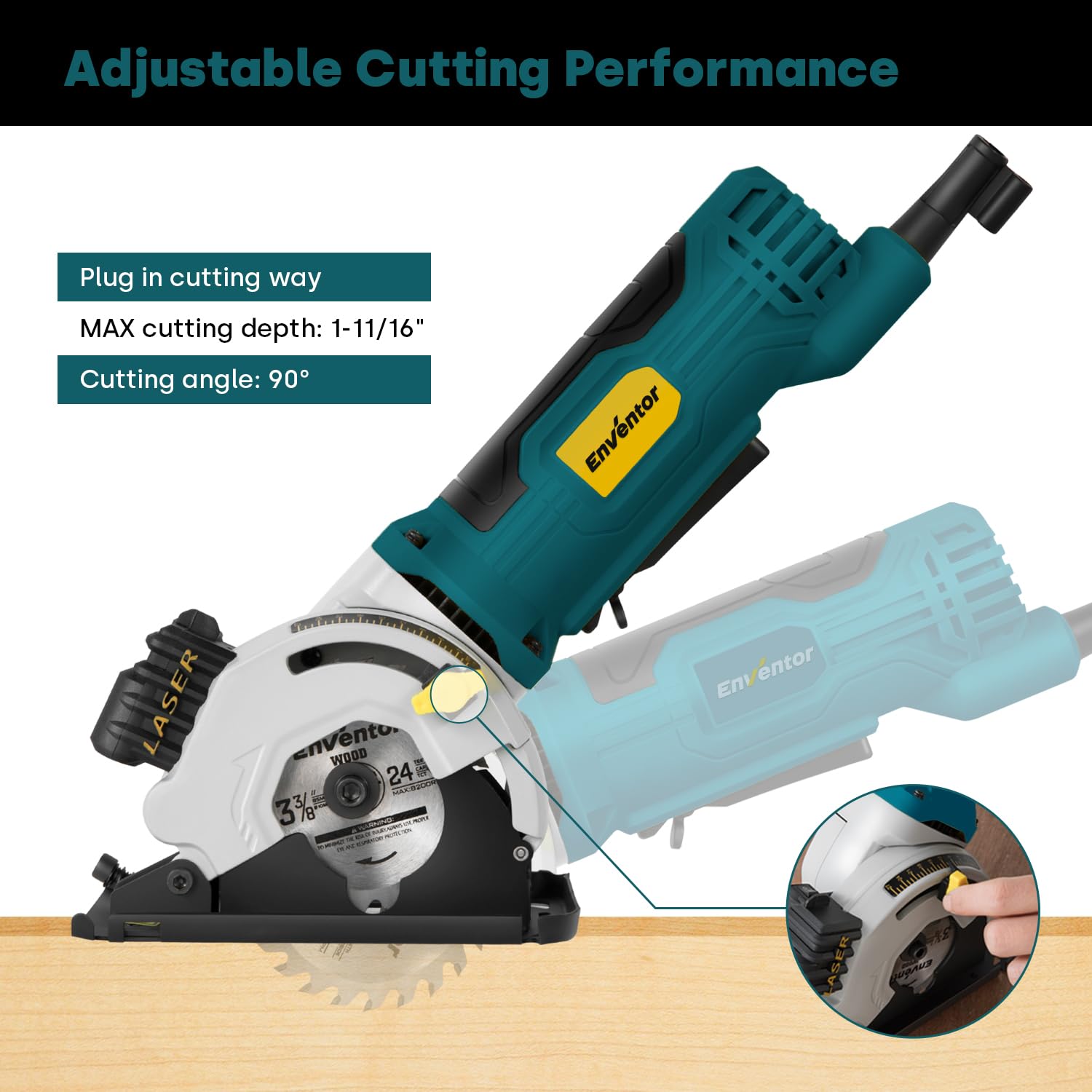 - Adjustable Cutting Depth: Enventor mini circular saw cutting depths of up to 1-1/16", The left-sided blade design gives you a clear sight of the cutting line. A parallel guide attachment ensures straight, precise cuts easily and quickly.
