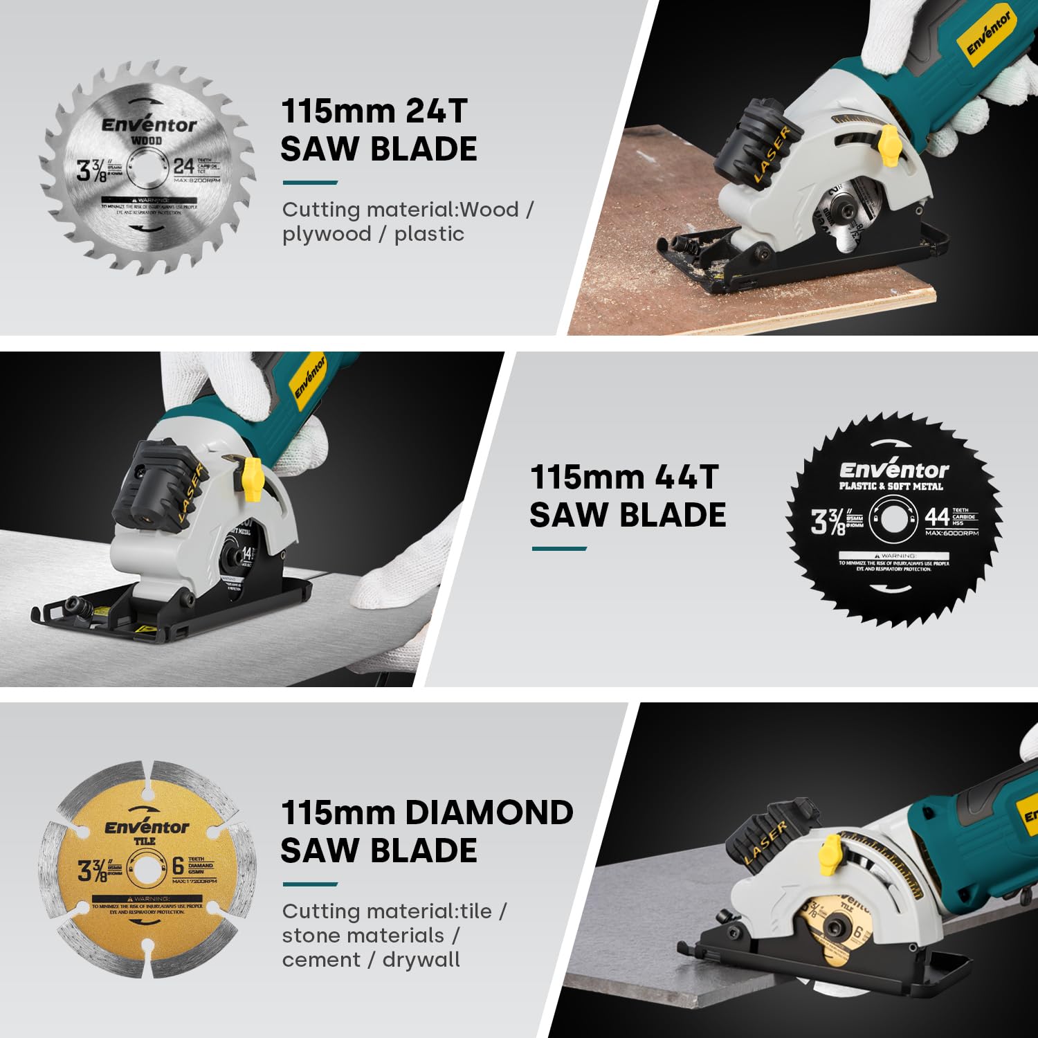 Enventor Mini Circular Saw, 4.8A Electric Circular Saws Corded with Laser Guide, 4000RPM, 3 Saw Blades 3-3/8" Max Cutting Depth 1-1/16", Compact, Power for Wood, Soft Metal, Tile, Plastic