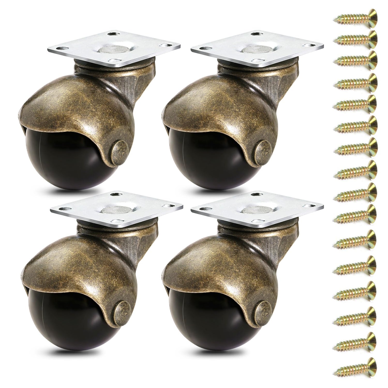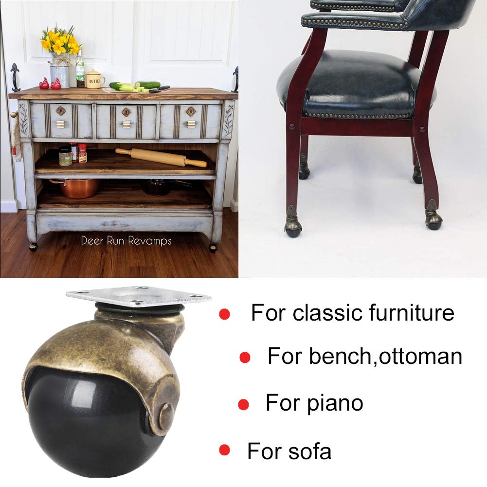- ◆CLASSIC ANTIQUE WHEELS FOR FURNITURE, with brass plate, rolling smoothly, easy installation by using 16 screws we prepare to fix the furniture wheels 4 pack on your chair. It would be awesome if you like to DIY, such a good experience. Made your vintage furnitures move to anywhere and convenient in your life.