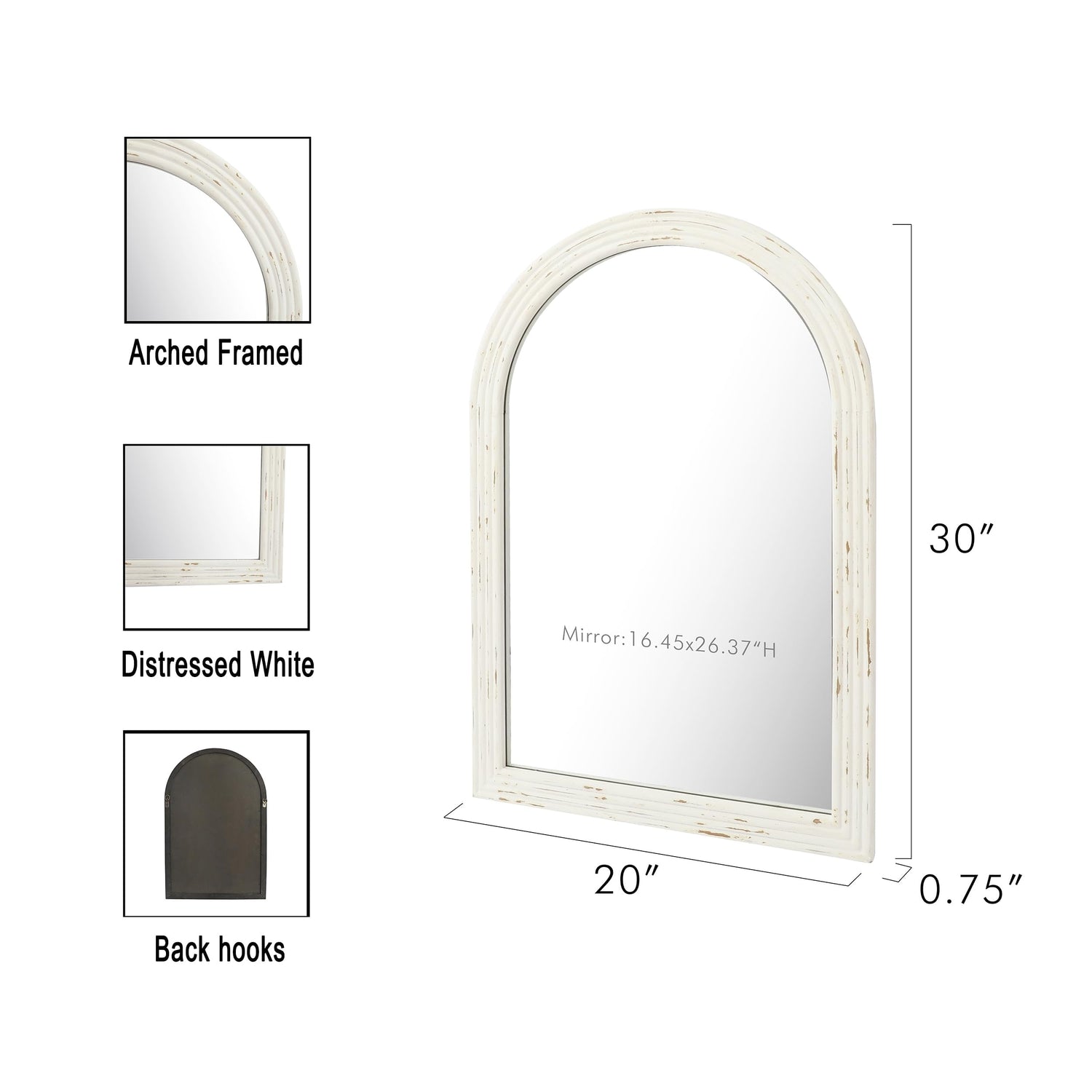 eodme Farmhouse Arched Wall Mirror, White Distressed Wood Mirror, Decorative Mirror for Bathroom Living Room Bedroom Entryway, 20''×30''