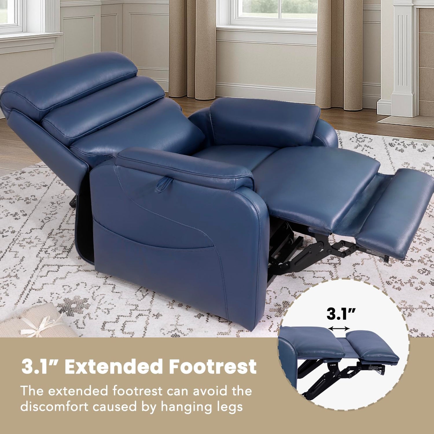 EONIX Dual Motor Lay Flat Power Lift Recliner Chair for Elderly, Electric Faux Leather Lift Chairs for Adults, 400lbs Heavy Duty Power Recliner Lift Sofa with Heat and Massage, Navy Blue