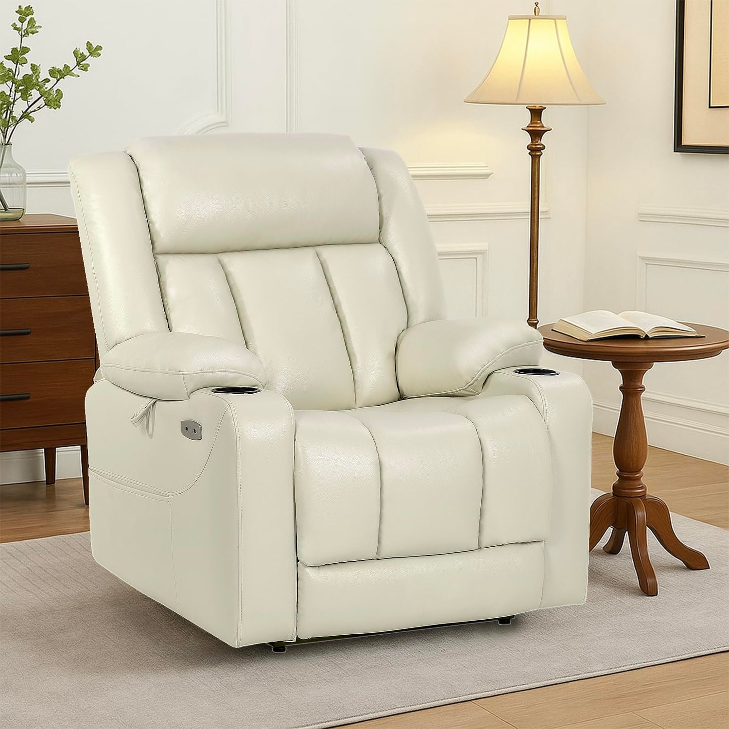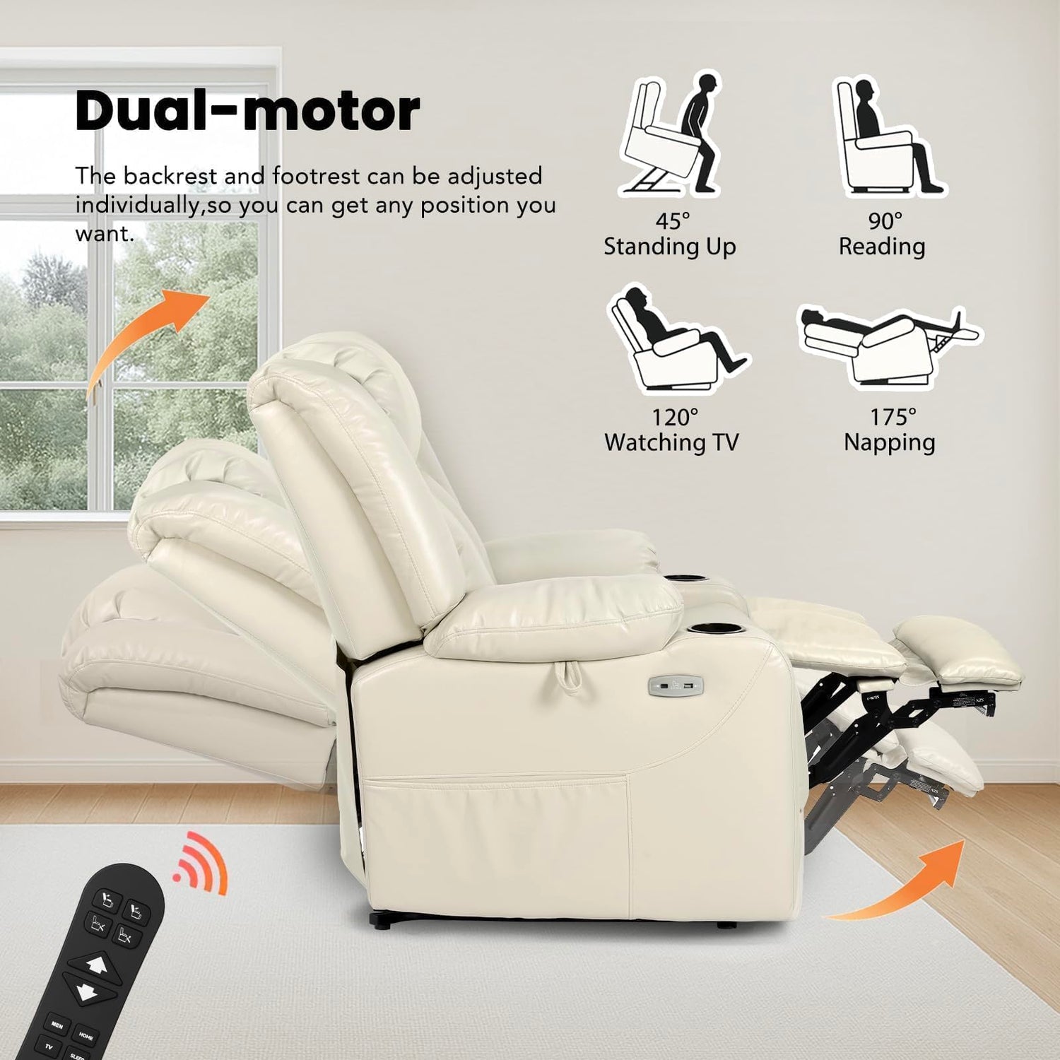 EONIX Dual Motor Oversized Power Lift Recliner Chair for Elderly, 400lbs Heavy Duty Faux Leather Recliner with Massage and Heat, Lay Flat Big and Tall Lift Chair with Cup Holders, Cream White