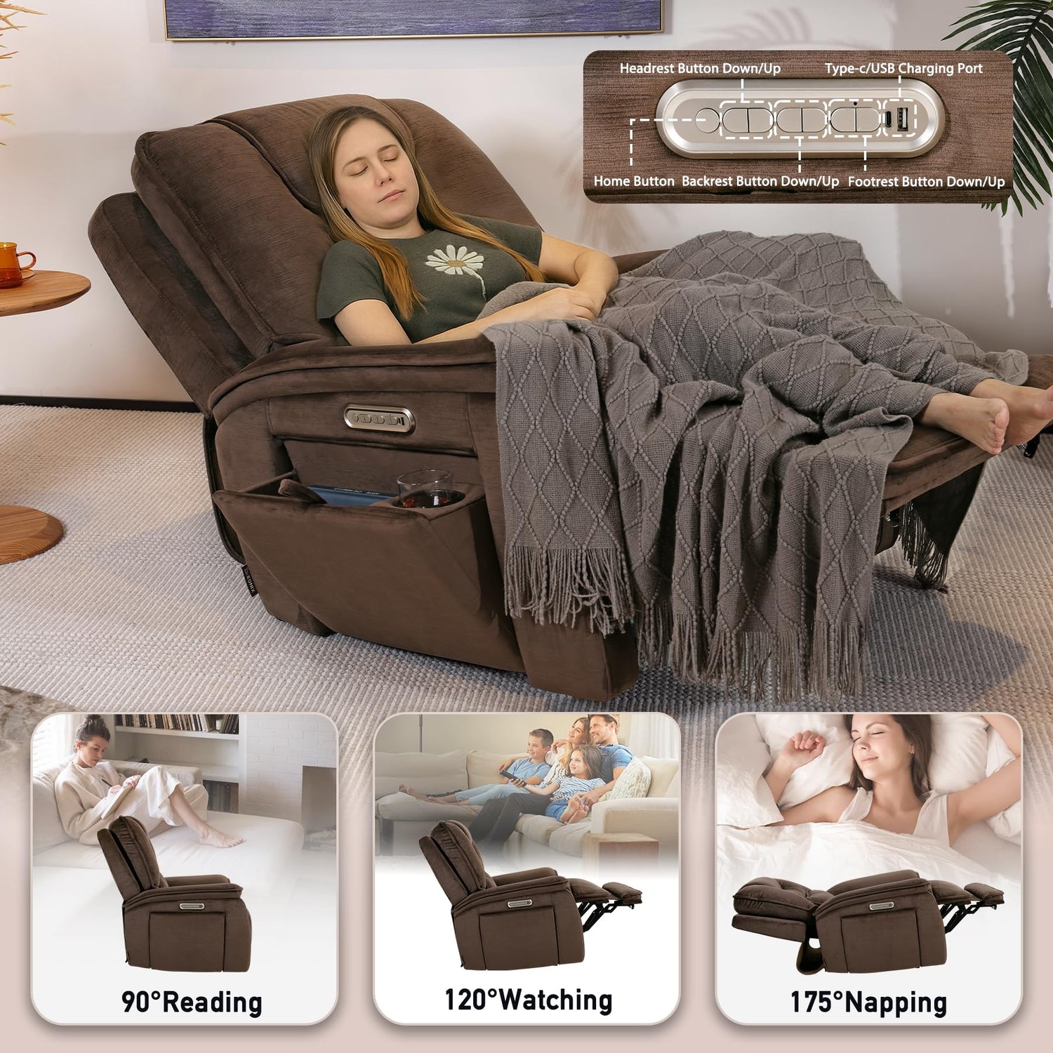 - Zero Gravity Recliner: This special zero gravity position evenly distributes body weight, improving circulation, alleviating spinal pressure, and promoting relaxation and sleep, offering a unique and highly comfortable experience. In addition, the power zero gravity lounge chair has adjustable angles and support points to meet the needs of different people.