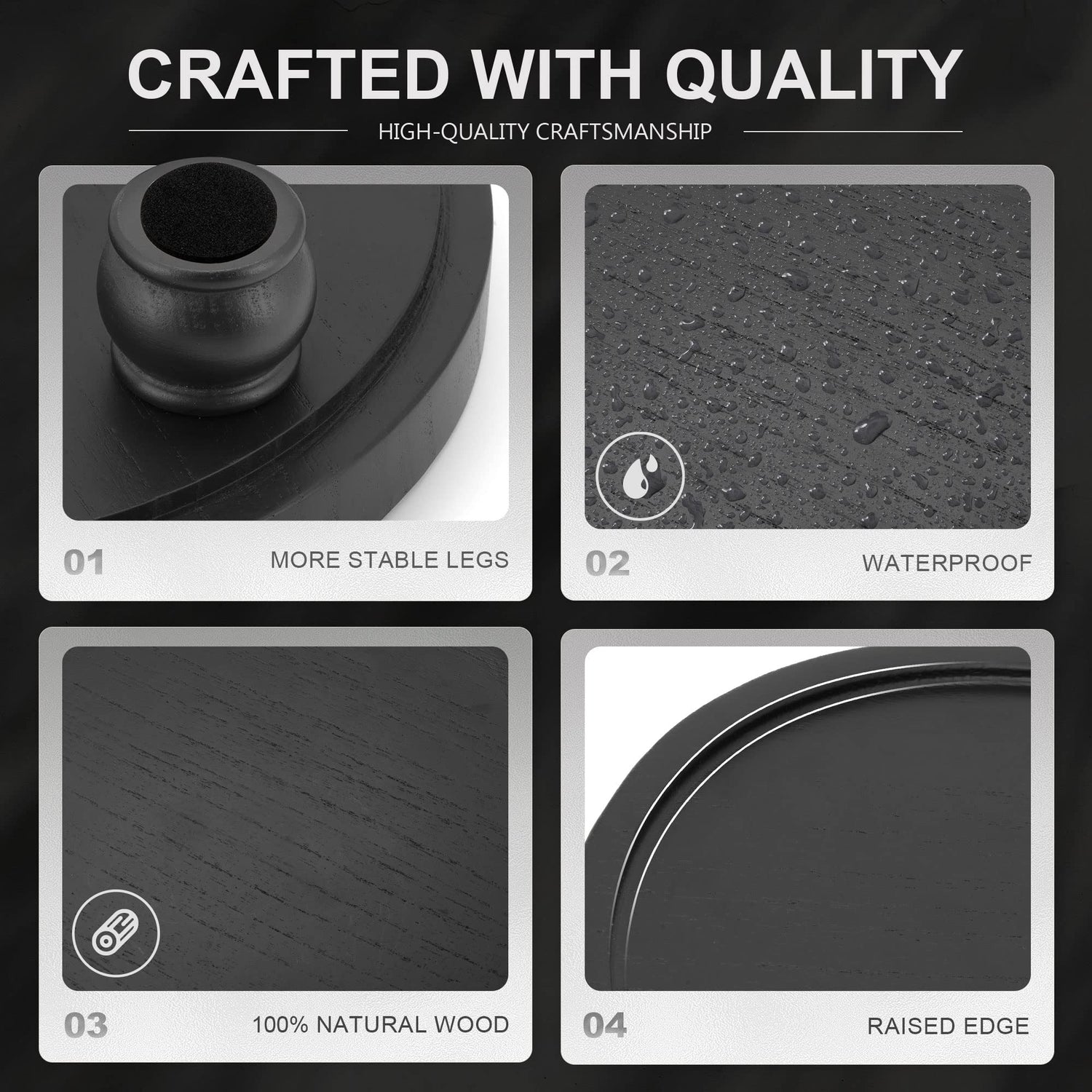 - [THOUGHTFUL DESIGN DETAIL] The decorative wood riser with raised edges to prevent items from slipping, this decor riser features 3 circular bases that keep it elevated off damp surfaces and scratching counter. Each leg is equipped with non-slip pads for added stability.