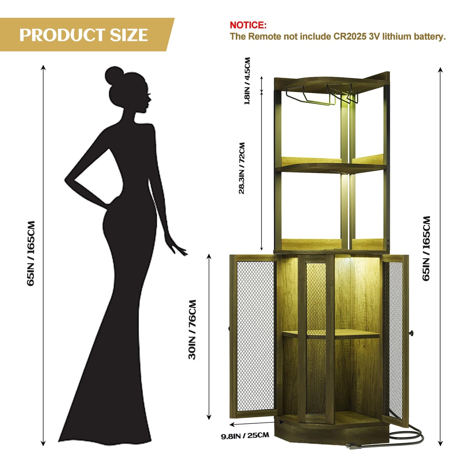 - Universal Tall Corner Cabinet: The EOYUTLLY Corner Bar Cabinet features a timeless design and versatile functionality as a wine cabinet, bar table and display cabinet. It can effortlessly complement various decor styles to elevate your home entertainment experience.Note:The Remote not include CR2025 3V lithium battery