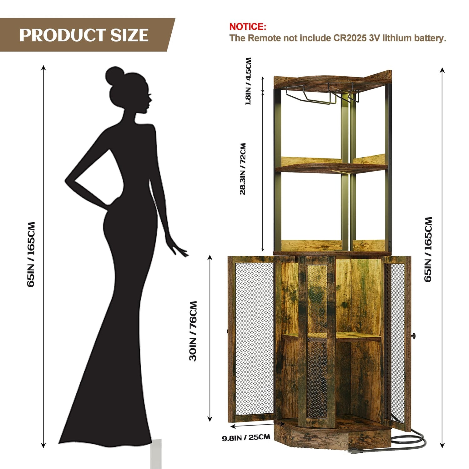 - Universal Tall Corner Cabinet: The EOYUTLLY Corner Bar Cabinet features a timeless design and versatile functionality as a wine cabinet, bar table and display cabinet. It can effortlessly complement various decor styles to elevate your home entertainment experience.Note:The Remote not include CR2025 3V lithium battery