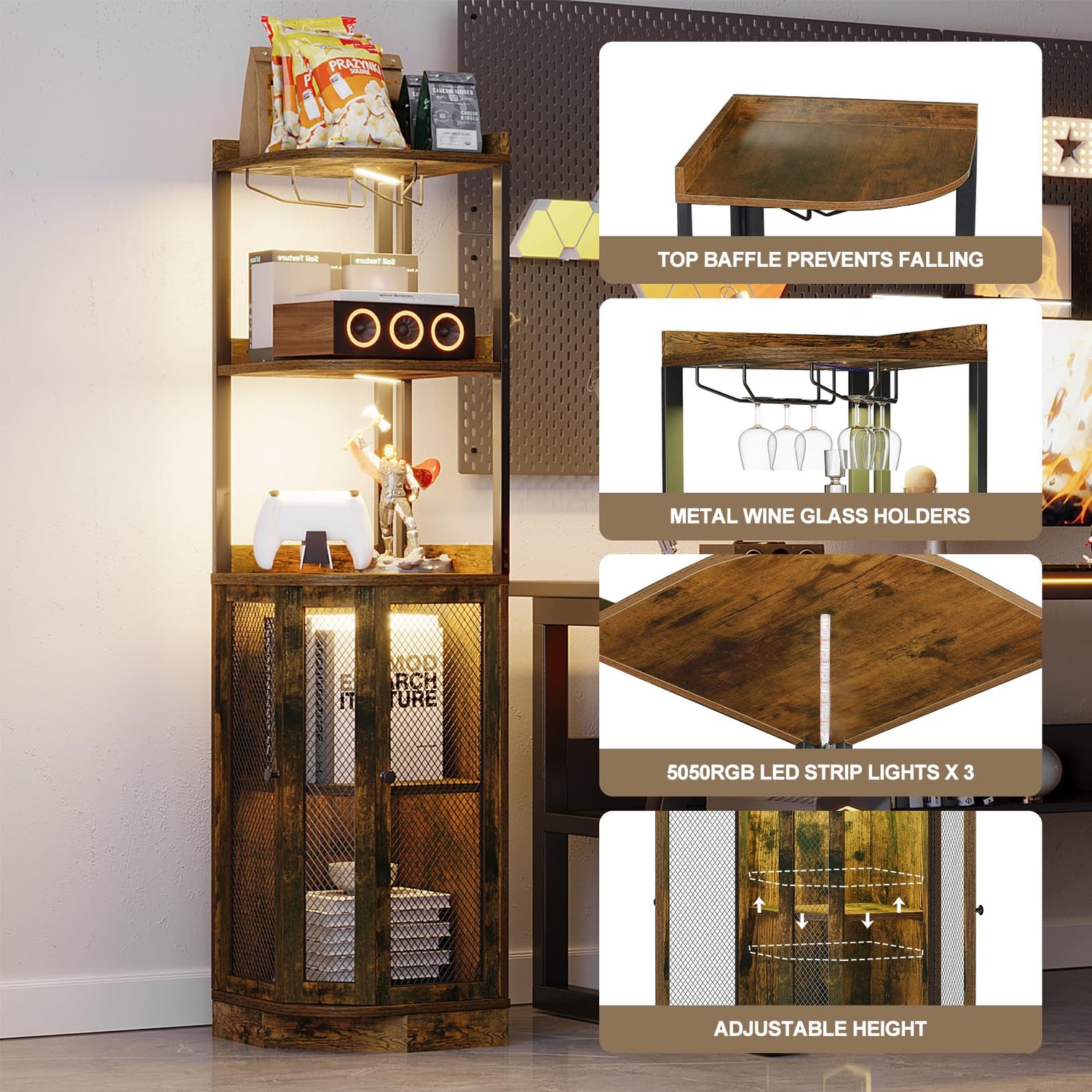 - Multifunctional Cabinet: The Corner Bar Cabinet is designed for functionality and style. With convenient electrical outlet and remote-controlled lighting effects, it is perfect for creating a cozy coffee bar or showcasing your favorite wine collection