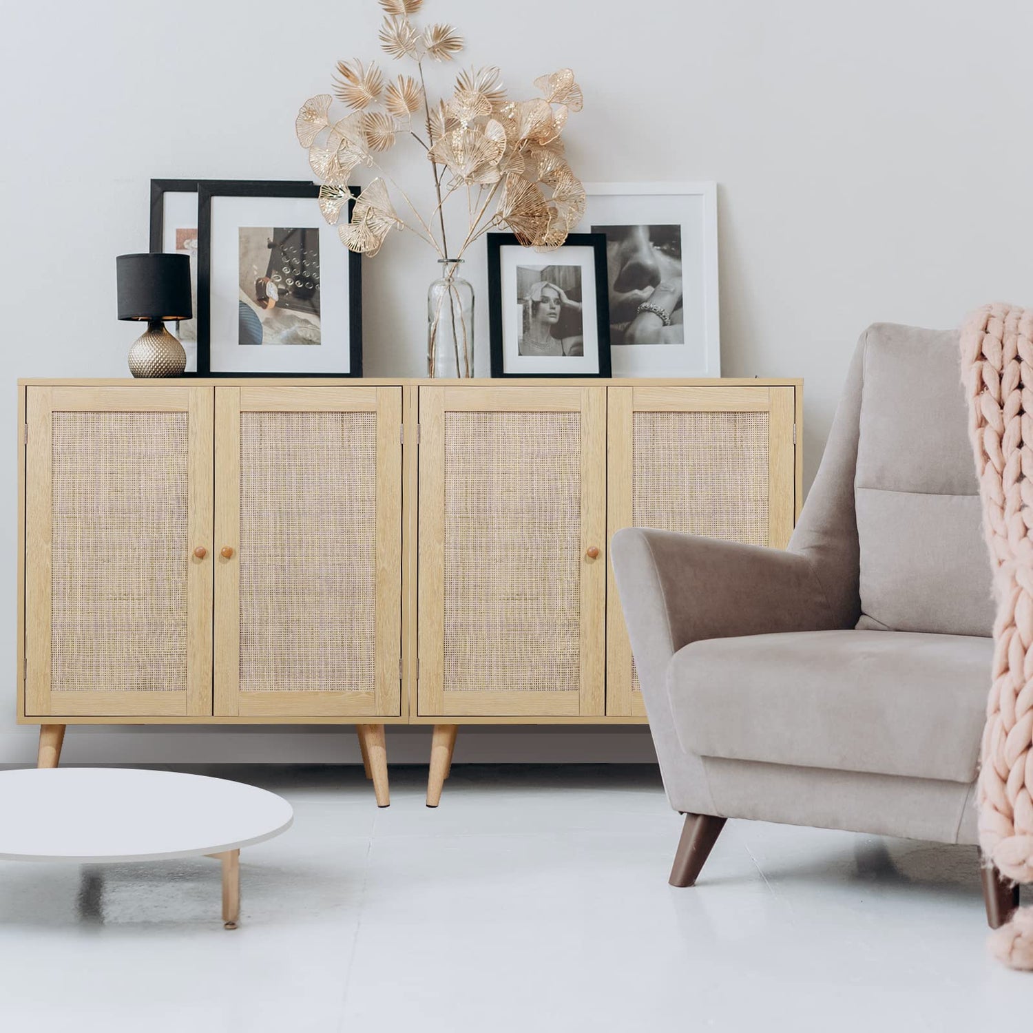 - MODERN RATTAN DESIGN: EOYUTLLY Sideboard buffet cabinet uses natural rattan to create a combination of classic and modern rattan decorative doors.Rattan cabinet can not only absorb moisture and heat, but also add unique natural charm to your home. Due to the pure hand-made natural rattan, there will be a few rattan burrs on the decorative door, please pay attention